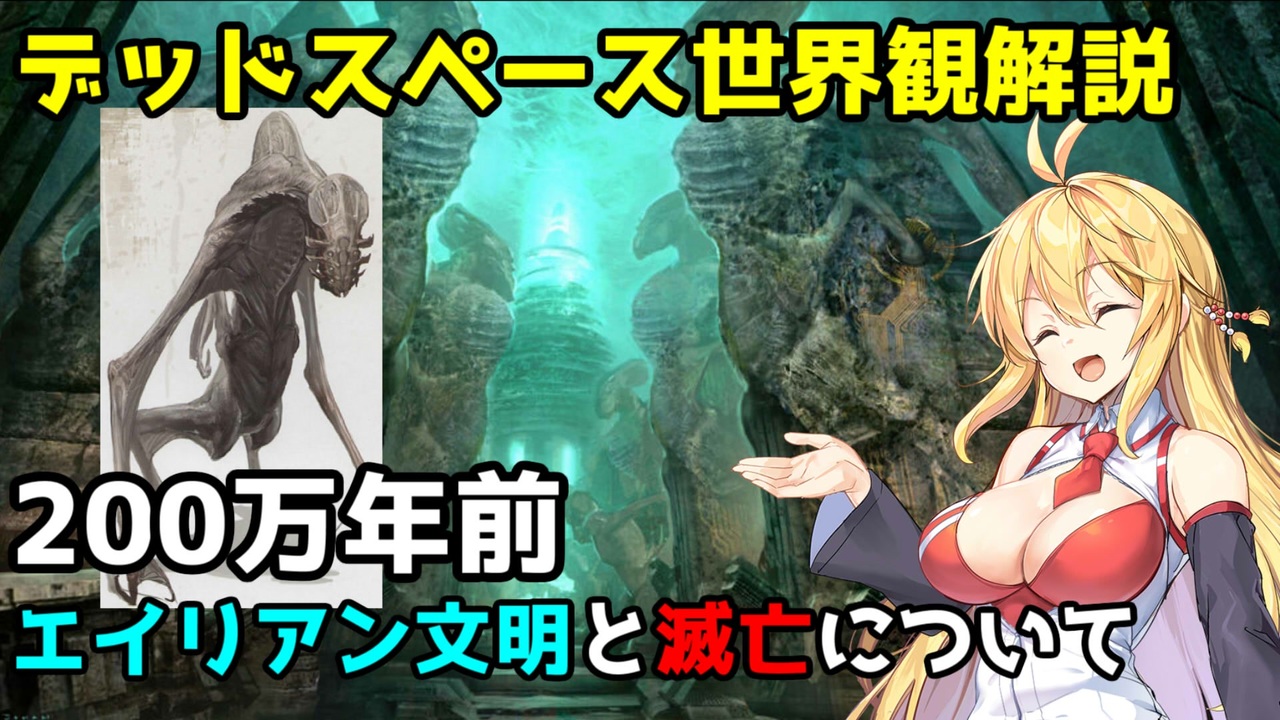 どうも皆さん、よこちーです。<br>今回からデッドスペース世界の歴史や出来事などの情報を<br>まとめた動画を投稿していこうと思います。<br><br>ゲーム以外の動画投稿は初めてなので至らない点があると思いますが<br>よろしくお願いします。<br><br>第二回目の今回は、3の舞台であるタウ・ヴォランティスに住んでいた<br>エイリアンについてと滅亡したまでの出来事をお話しさせていただきます。<br>次回第三回目は小説作品、「殉教者」に関して触れていこうと思います。<br><br><a href="https://www.nicovideo.jp/watch/sm40124063" class="watch">sm40124063</a>←前回 次回→<a href="https://www.nicovideo.jp/watch/sm40311714" class="watch">sm40311714</a><br><br>・デッドスペース3part1(2017年投稿)⇒<a href="https://www.nicovideo.jp/watch/sm31283490" class="watch">sm31283490</a><br>・デッドスペース2part1(2021年投稿)⇒<a href="https://www.nicovideo.jp/watch/sm38354940" class="watch">sm38354940</a><br>・デッドスペース part1(2021年投稿)⇒<a href="https://www.nicovideo.jp/watch/sm39080252" class="watch">sm39080252</a><br>・初代デッドスペースマイリスト→<a href="https://www.nicovideo.jp/mylist/71430727" target="_blank" rel="noopener">mylist/71430727</a><br>各part1マイリスト→<a href="https://www.nicovideo.jp/mylist/59931747" target="_blank" rel="noopener">mylist/59931747</a><br><br>いつもお世話になっている先生たち<br><br>・立ち絵<br><br>〇アジシオ様<br>弦巻マキ(<a href="https://seiga.nicovideo.jp/seiga/im10593538" target="_blank" rel="noopener">im10593538</a>)<br><br>・BGM<br>〇むつき醒様<br><br>素材<br><br>いらすとや様より一部お借りしてます<br>効果音ラボ様より一部お借りしてます<br><br>動画の進捗とかいろいろつぶやいてます。<br>検索で引っかからない場合はお手数ですがこちらからどうぞ。<br>⇒【Twitter】⇒<a href="https://twitter.com/yukamaki5656" target="_blank" rel="noopener nofollow">https://twitter.com/yukamaki5656</a><br><br>過去の動画とかをたまにyoutubeに上げてます。<br>もしよろしければ高評価&チャンネル登録をお願いします。<br>⇒<a href="https://www.youtube.com/channel/UCZo_zA7_xQkimatzi4TlOow" target="_blank" rel="noopener nofollow">https://www.youtube.com/channel/UCZo_zA7_xQkimatzi4TlOow</a>