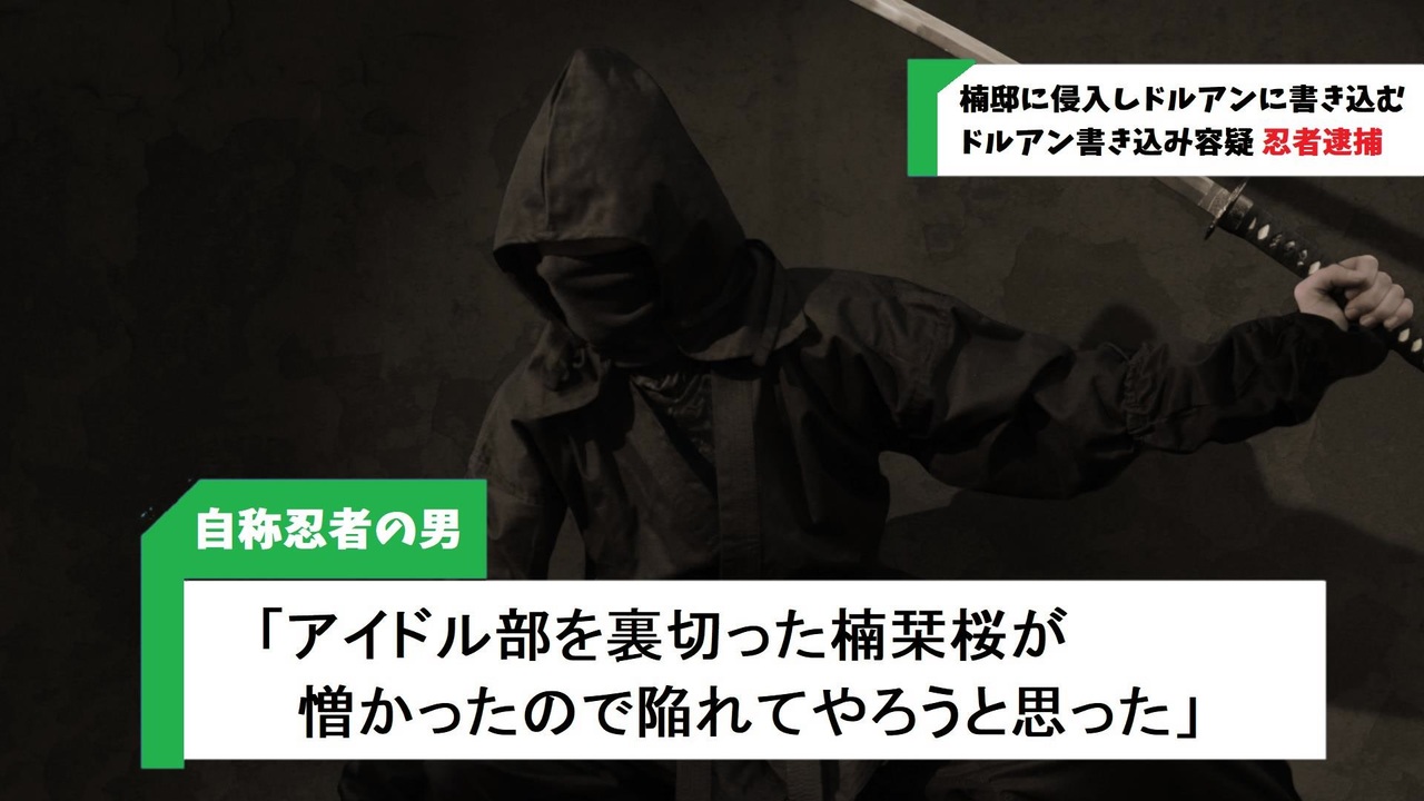 2021年4月1日、バーチャルYouTuberの楠栞桜さんの自宅に侵入しドルアンに書き込んだ容疑で練馬区に住む忍者の男が警視庁に逮捕されました。忍者の男は警察の調べに対し「アイドル部を裏切った楠栞桜が憎かった」などと意味不明な供述を繰り返しており警視庁では引き続き<br><br>引用<br>無し<br><br>今後の 製作予定動画<br>2022年4月~「バーチャルブッダより大切なお知らせ」<br>元にじさんじ運営幹部いわなが社長、新しい箱を立ち上げる<br>鳴神裁「にじさんじの野良猫俺のこと好きだよな?」<br>にじさんじ×DLsite ASMRコラボ5~6弾販売中止<br>【悲報】鳴神裁「裁判をすっ飛ばして逮捕はあり得ない」<br>にじさんじ引退者まとめPart.3<br>にじさんじとストーカー被害まとめ<br>【悲報】にじさんじライバー、一本満足バーを一度に二本食べてしまう<br><br>公開マイリスト<br>1 <a href="https://www.nicovideo.jp/mylist/66855587" target="_blank" rel="noopener nofollow">https://www.nicovideo.jp/mylist/66855587</a><br>2 <a href="https://www.nicovideo.jp/mylist/71980663" target="_blank" rel="noopener nofollow">https://www.nicovideo.jp/mylist/71980663</a><br>Youtube <a href="https://www.youtube.com/channel/UCzYQPx8MeE99DUkW9Y_txJw" target="_blank" rel="noopener nofollow">https://www.youtube.com/channel/UCzYQPx8MeE99DUkW9Y_txJw</a><br>twitter <a href="https://twitter.com/V_Virgin_Mary" target="_blank" rel="noopener nofollow">https://twitter.com/V_Virgin_Mary</a><br><br>使用素材<br>高品質なフリー動画素材 - Pixabay <a href="https://pixabay.com/ja/videos" target="_blank" rel="noopener nofollow">https://pixabay.com/ja/videos</a><br>MUSMUS <a href="https://musmus.main.jp/" target="_blank" rel="noopener nofollow">https://musmus.main.jp/</a> 真夏のレモネード