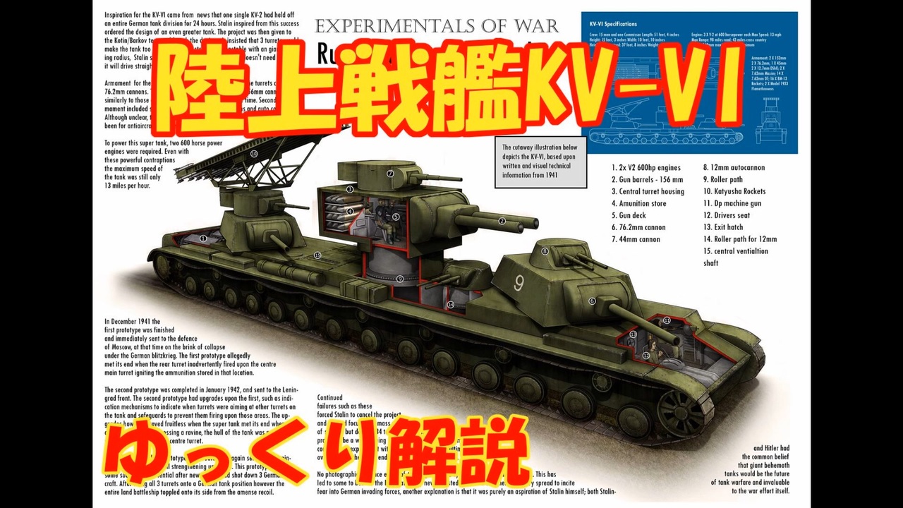 今年はちょくちょく実在が疑われてるコイツをいい加減解説しようと思った。おまけでソ連における重戦車ってジャンルの立ち位置についても軽く触れてるよ(もちろんその部分は嘘じゃない…はず<br><br>なお結論パートは4:56から<br><br>・BGM<br>“Pardon The Glove”(いつもの)<br>“A room of view 1928"<br>"Black and blue rhythm"<br>"That's how feel about you"<br><br>結論パート→4:56<br><br>・参考<br><a href="https://www.track-link.com/gallery/119" target="_blank" rel="noopener nofollow">https://www.track-link.com/gallery/119</a><br><a href="https://tanks-encyclopedia.com/ww2/soviet/kv_vi_fake_tanks.php" target="_blank" rel="noopener nofollow">https://tanks-encyclopedia.com/ww2/soviet/kv_vi_fake_tanks.php</a><br><a href="https://car.mirtesen.ru/blog/43495457451/KV-6-Realnaya-mashina-ili-krasivaya-legenda?utm_referrer=mirtesen.ru" target="_blank" rel="noopener nofollow">https://car.mirtesen.ru/blog/43495457451/KV-6-Realnaya-mashina-ili-krasivaya-legenda?utm_referrer=mirtesen.ru</a><br>wikipedia日英露版、topwar.ru<br><br />BGM(2025/1/31~):若林タカツグ<br><a href="https://x.com/cocoa2448" target="_blank" rel="noopener nofollow">https://x.com/cocoa2448</a><br><a href="https://youtube.com/@Takatsugu" target="_blank" rel="noopener nofollow">https://youtube.com/@Takatsugu</a><br><br>告知用X→@straw3rd(<a href="https://twitter.com/straw3rd" target="_blank" rel="noopener nofollow">https://twitter.com/straw3rd</a> )<br>イラスト提供者様(2024~)→<a href="https://twitter.com/TheoryIV" target="_blank" rel="noopener nofollow">https://twitter.com/TheoryIV</a><br>お題箱(兵器のリクエストはここへ)→<a href="http://odaibako.net/u/straw2nd" target="_blank" rel="noopener nofollow">http://odaibako.net/u/straw2nd</a><br>サークルHP(ブログでも兵器解説してるよ→<a href="http://teambtrb.com/" target="_blank" rel="noopener nofollow">http://teambtrb.com/</a><br>サブスクじゃない投げ銭入れ→<a href="https://ofuse.me/straw3991" target="_blank" rel="noopener nofollow">https://ofuse.me/straw3991</a>