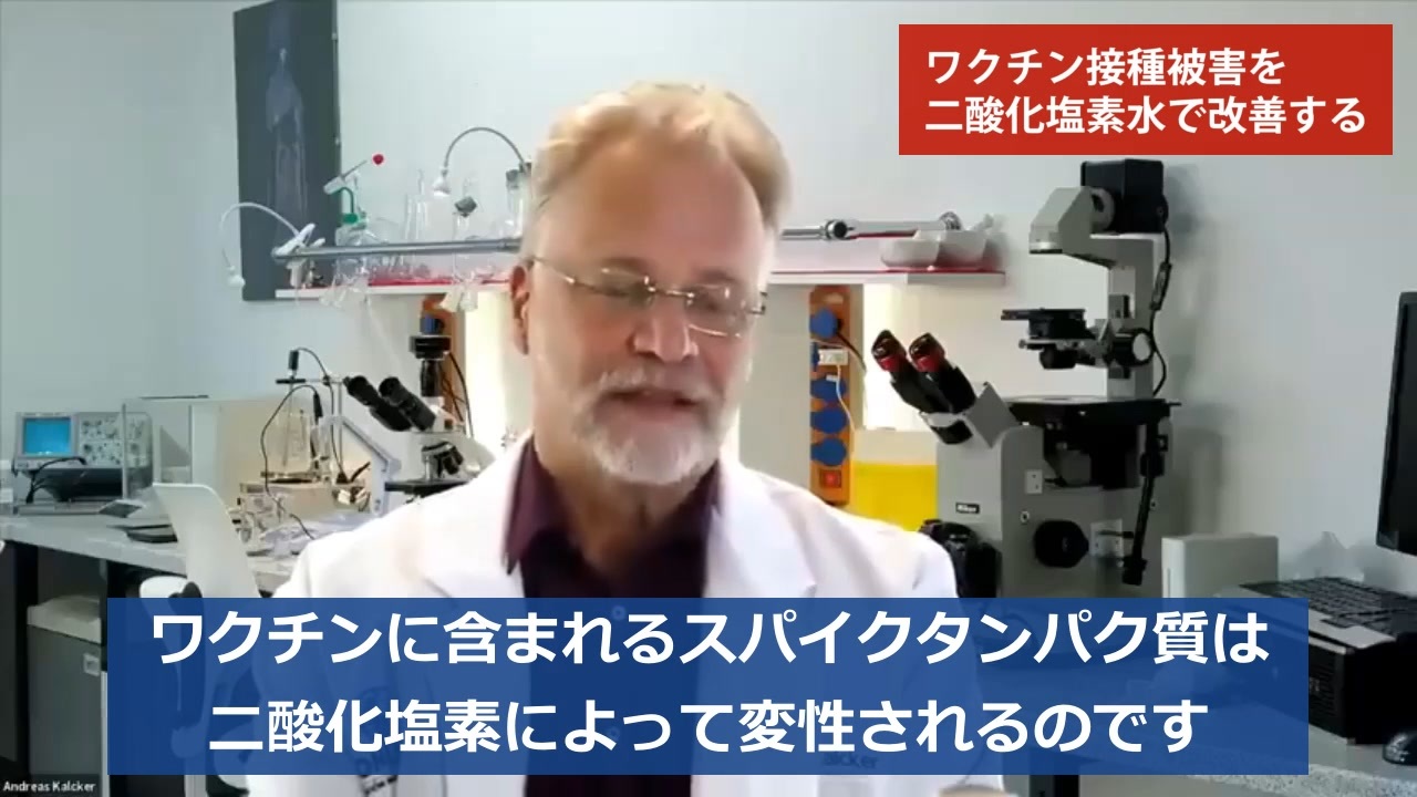 元動画:<br>COMUSAV DR. ANDREAS KALCKER - CHLORINE DIOXIDE DENATURES SPIKE PROTEIN FROM COVID/GRAPHENE "VACCINE"<br><a href="https://www.bitchute.com/video/DyyuCQvsxVMn/" target="_blank" rel="noopener nofollow">https://www.bitchute.com/video/DyyuCQvsxVMn/</a><br><br>二酸化塩素水についてのシリーズ動画<br><a href="https://www.nicovideo.jp/series/254161" target="_blank" rel="noopener nofollow">https://www.nicovideo.jp/series/254161</a><br><br>アンドレアス・カルカー:ワクチンによる凝血に二酸化塩素で対抗する<br><a href="https://www.bitchute.com/channel/alcyonpleiades-jp/" target="_blank" rel="noopener nofollow">https://www.bitchute.com/channel/alcyonpleiades-jp/</a><br><br>ワクチン接種後のデトックス ドクタ-・アパリシオ<br><a href="https://t.me/setumei/253" target="_blank" rel="noopener nofollow">https://t.me/setumei/253</a><br><br>二酸化塩素水は血液に何をもたらすのか?(顕微鏡ビュー)<br><a href="https://odysee.com/@pomchannel:e/15:2f" target="_blank" rel="noopener nofollow">https://odysee.com/@pomchannel:e/15:2f</a><br><br>アンドレア・カルケル博士のボリビアにおける活動の説明(二酸化塩素水によるCOVID-19の治癒と合法化事例)<br><a href="https://odysee.com/@pomchannel:e/5:36" target="_blank" rel="noopener nofollow">https://odysee.com/@pomchannel:e/5:36</a><br><br>『MMS』奇跡のミネラルサプリメント★二酸化塩素(CIO2)<br><a href="https://www.bitchute.com/video/o9Cvi9xCGBu4/" target="_blank" rel="noopener nofollow">https://www.bitchute.com/video/o9Cvi9xCGBu4/</a><br><br>二酸化塩素水(CDS)がどのように発明されたか:Andreas Kalckerによるオリジナル映像<br><a href="https://odysee.com/@pomchannel:e/14:2f4" target="_blank" rel="noopener nofollow">https://odysee.com/@pomchannel:e/14:2f4</a><br><br>アンドレアカルケル博士のホ-ムぺ-ジ”二酸化塩素による臨床研究” <br><a href="https://andreaskalcker.com/" target="_blank" rel="noopener nofollow">https://andreaskalcker.com/</a><br /><br>*****************************<br>日本の有志グループのつくった翻訳字幕動画です。odyseeでダウンロード出来ます。<br><br>odyseeのぽむちゃんねる <a href="https://odysee.com/@pomchannel:e" target="_blank" rel="noopener nofollow">https://odysee.com/@pomchannel:e</a><br>※検閲のないテレグラムというアプリを日本語化して使ってみてください。日本語でも読める世界からのいろいろな情報があります。