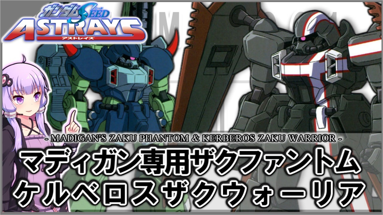 沢山のコメントやマイリス、フォロー、広告ありがとうございます。<br>励みにさせて頂いています。<br><br>※5:42 誤:「VS ASTRAYS」 ⇒ 正:「FRAME ASTRAYS」<br><br>-----注意事項------<br>・作品のネタばれが多分に含まれる場合があります。<br>・誤字脱字、間違いなどある場合があります。<br>・調べて動画を作成していますが、この動画の情報が必ず正しいというわけではありません。<br> ですので、ガンダム好きが早口で何か言っているくらいの認識での視聴をお勧めします。<br><br>次:ZGMF-X2000CQGB&S グフクラッシャー ⇒<a href="https://www.nicovideo.jp/watch/sm40297311" class="watch">sm40297311</a><br>前:イライジャ専用ザクファントム&リーカ専用ブレイズザクファントム ⇒<a href="https://www.nicovideo.jp/watch/sm40232438" class="watch">sm40232438</a><br>【機動戦士ガンダムSEED ASTRAY】外伝機体の解説 ⇒<a href="https://www.nicovideo.jp/mylist/71039433" target="_blank" rel="noopener">mylist/71039433</a><br><br>※以前の動画<br>【新機動戦記ガンダムW】TV版の機体解説 ➪<a href="https://www.nicovideo.jp/mylist/70337944" target="_blank" rel="noopener">mylist/70337944</a><br>【新機動戦記ガンダムW】アニメ以外の作品解説 ➪<a href="https://www.nicovideo.jp/mylist/69631278" target="_blank" rel="noopener">mylist/69631278</a><br>【新機動戦記ガンダムW】Endless Waltz 敗者たちの栄光の解説 ⇒<a href="https://www.nicovideo.jp/mylist/68922905" target="_blank" rel="noopener">mylist/68922905</a><br>【ガンダム00外伝MS解説】⇒<span style="color: #006699; font-size: 14px;"><a href="https://www.nicovideo.jp/mylist/66597479" target="_blank" rel="noopener">mylist/66597479</a></span>