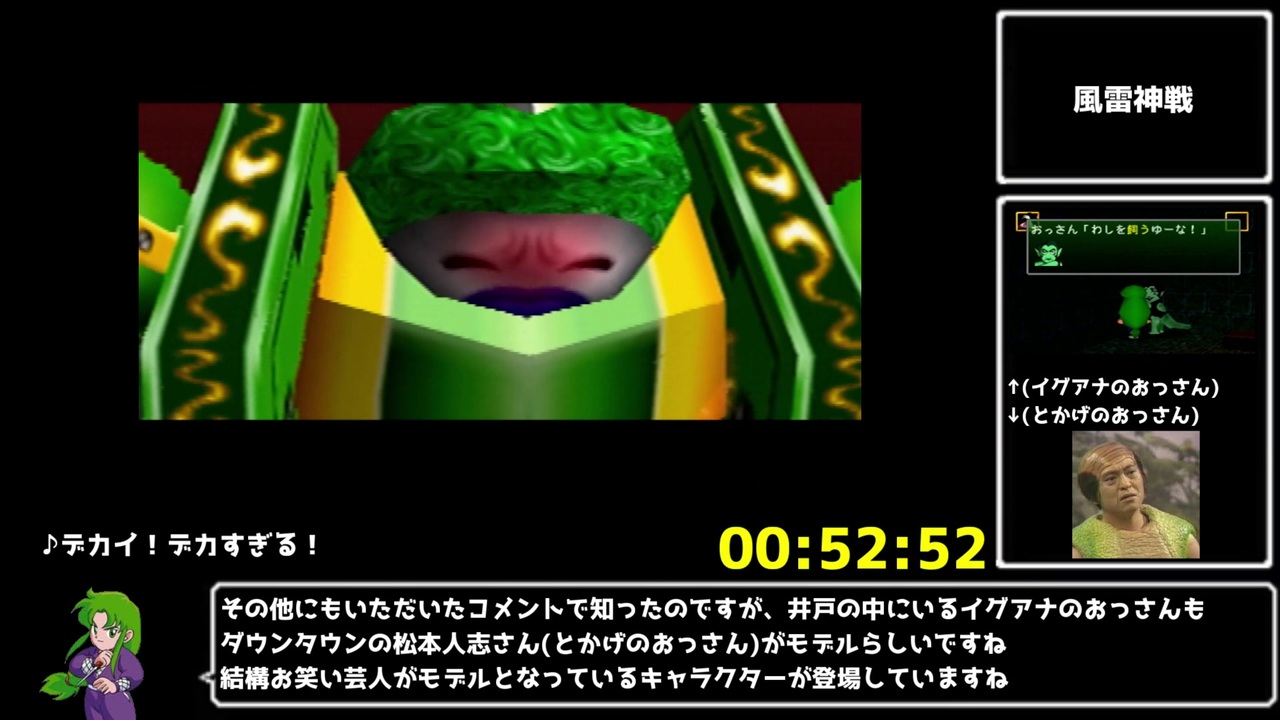 前⇒<a href="https://www.nicovideo.jp/watch/sm40222456" class="watch">sm40222456</a><br>次⇒<a href="https://www.nicovideo.jp/watch/sm40331845" class="watch">sm40331845</a><br>マイリスト⇒<a href="https://www.nicovideo.jp/mylist/72797482" target="_blank" rel="noopener">mylist/72797482</a><br><br>魔人城<br>今回は、本作で(たぶん)2番目に難易度の高い城ステージ、魔人城の攻略となります!<br>魔人城は被弾ジャンプでごり押しする場面が多く、体力管理が必要なためRTAでも難易度の高い区間となっています!<br><br>また、今回の解説で出てくるRTA技やバグについては別の動画(<a href="https://www.nicovideo.jp/watch/sm40071366" class="watch">sm40071366</a>)にて説明しており、こちらをご視聴いただいた前提でRTA解説をしております。<br><br><br>計測開始:ゲームをリセットした瞬間<br>計測終了:ラスボスのドウチュウ鬼を撃破し画面がホワイトアウトした瞬間<br><br>普段はTwitch( <a href="https://www.twitch.tv/koryuta_dayo" target="_blank" rel="noopener nofollow">https://www.twitch.tv/koryuta_dayo</a> )にてRTA配信をやっています<br>この動画をきっかけに、普段のRTA配信にも興味を持っていただけたら幸いです<br><br>ゴエモンRTA用のdiscordのサーバーを作ってみました!<br>(64作品が主ですが)ゴエモンRTAについて詳しく知りたい方はご利用ください!<br>⇒<a href="https://discord.gg/s2dV7XjPJS" target="_blank" rel="noopener nofollow">https://discord.gg/s2dV7XjPJS</a><br><br>