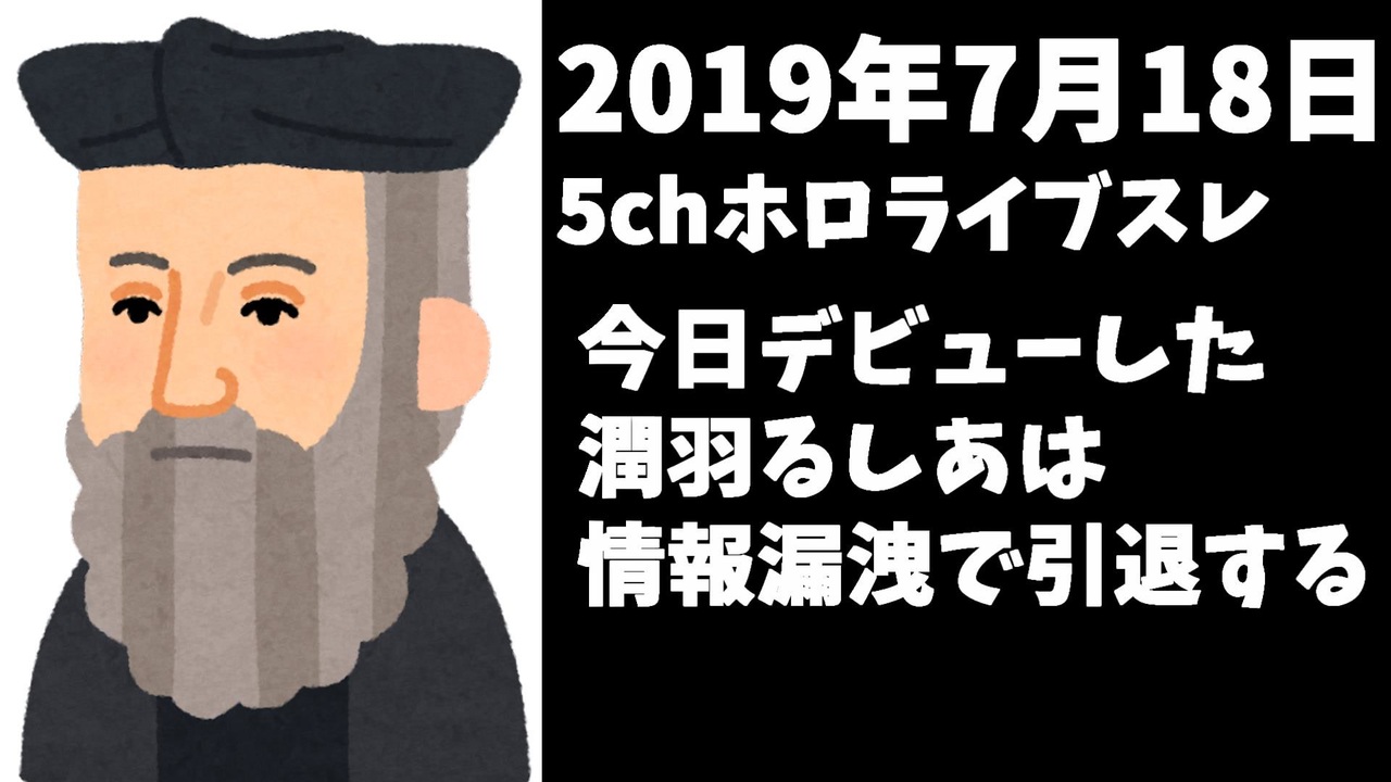 2019年7月18日21時、ホロライブの潤羽るしあさんがユーチューブで初配信を行った日の、5chホロライブアンチスレの書き込みを見ていく動画です。当時から一部の人は、潤羽るしあは情報漏洩で辞めるのではないかという懸念を持っていたことがわかる興味深い資料でした。<br><br>引用 ※ホロライブアンチスレ閲覧注意<br>【バーチャル】 hololiveスレ#906 【YouTuber】<br><a href="https://egg.5ch.net/test/read.cgi/streaming/1563452127/" target="_blank" rel="noopener nofollow">https://egg.5ch.net/test/read.cgi/streaming/1563452127/</a><br><br>今後の 製作予定動画<br>2022年4月~「バーチャルブッダより大切なお知らせ」<br>元にじさんじ運営幹部いわなが社長、新しい箱を立ち上げる<br>鳴神裁「にじさんじの野良猫俺のこと好きだよな?」<br>にじさんじ×DLsite ASMRコラボ5~6弾販売中止<br>【悲報】鳴神裁「裁判をすっ飛ばして逮捕はあり得ない」<br>にじさんじ引退者まとめPart.3<br>にじさんじとストーカー被害まとめ<br>【悲報】にじさんじライバー、一本満足バーを一度に二本食べてしまう<br><br>公開マイリスト<br>1 <a href="https://www.nicovideo.jp/mylist/66855587" target="_blank" rel="noopener nofollow">https://www.nicovideo.jp/mylist/66855587</a><br>2 <a href="https://www.nicovideo.jp/mylist/71980663" target="_blank" rel="noopener nofollow">https://www.nicovideo.jp/mylist/71980663</a><br>Youtube <a href="https://www.youtube.com/channel/UCzYQPx8MeE99DUkW9Y_txJw" target="_blank" rel="noopener nofollow">https://www.youtube.com/channel/UCzYQPx8MeE99DUkW9Y_txJw</a><br>twitter <a href="https://twitter.com/V_Virgin_Mary" target="_blank" rel="noopener nofollow">https://twitter.com/V_Virgin_Mary</a><br><br>使用素材<br>高品質なフリー動画素材 - Pixabay <a href="https://pixabay.com/ja/videos" target="_blank" rel="noopener nofollow">https://pixabay.com/ja/videos</a><br>いらすとや様 <a href="https://www.irasutoya.com/" target="_blank" rel="noopener nofollow">https://www.irasutoya.com/</a>