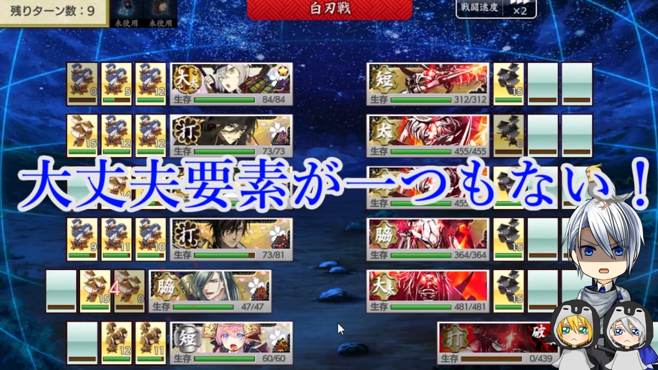 山姥切国広「この動画には注意点がある、それは…<br>亜種で幼児な二振り目山姥切国広や、写しに甘い山姥切長義が一緒にいることだ。<br>さらに実況というより雑談と茶番に近い。<br>冒頭の注意書きを見て、それでも許してくれる優しい奴は見ていってくれると、うれ…しい…」<br>エンドカード募集中です。何かありましたら【@okamesaniwa】まで。<br><br><br>情緒が殺されたので突貫工事で投稿しました。<br><span style="color: #ff0000;"><strong>大侵寇ラストまでのネタバレあり!</strong></span><br>三日月宗近の発言について、<span style="color: #ff0000;"><strong><u>悪戯本丸なりの個体差や認識</u></strong></span>が発生しています。<br>荒れたりしたら動画は非公開にしてコミュ限に投稿し直しします。<br><br><br>三日月二振りとWチビんばの関係→<a href="https://www.nicovideo.jp/watch/sm35885535" class="watch">sm35885535</a><br>当本丸の男士同士の関係や性格がわかる番外編動画→<a href="https://www.nicovideo.jp/watch/sm38422458" class="watch">sm38422458</a><br>インコ審神者と悪戯本丸:<a href="https://www.nicovideo.jp/mylist/53722405" target="_blank" rel="noopener">mylist/53722405</a>