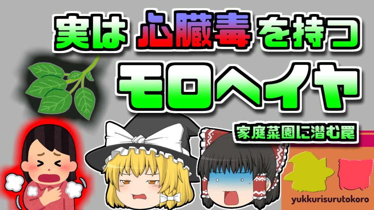 追記:動画の地域説明の部分で「旭川動物園」とj表記してしまっておりましたが、正しくは「旭山動物園」でした。<br>訂正して、お詫びいたします。<br><br>今回はリクエストの中から、「モロヘイヤ」に関する事例の紹介です。<br>北海道旭川市に暮らす女性「Aさん」。<br>真夏のこの日、彼女は春に庭に植えた野菜類を収穫し、それらを使って昼食を作り、一人で食べていました。<br>しかし、モロヘイヤの御浸しを食べていた時、口の中に違和感を覚えます。<br>何故か口の中や周りがピリピリとしびれるような、辛いような感覚になり、彼女は当初「灰汁が強いのかな」と考え、我慢して食べていましたが、それは治まるどころか、次第に痺れが強くなっていきました。<br>Aさんはこの痺れに我慢ができず、モロヘイヤを吐き出し、口を漱ぎましたが、症状は全く収まりません。<br>むしろ、動悸やめまい、吐き気までが襲ってきて、彼女はその場に立っていることも難しくなってしまいました。<br>これは普通の状態ではないと感じたAさんは、救急に通報。<br>彼女は病院に搬送されていきました。<br><br>実は、彼女を苛んでいたのは、成長したモロヘイヤの茎に含まれる「心臓毒」。<br>なぜ、一般的に広く食べられている、モロヘイヤにそんな毒があったのでしょうか?<br><br><a href="#" class="seekTime" data-seekTime="00:39" onclick="seekNicoPlayer('#00:39'); return false;">#00:39</a> 視聴上の注意<br><a href="#" class="seekTime" data-seekTime="1:09" onclick="seekNicoPlayer('#1:09'); return false;">#1:09</a> 現地の説明<br><a href="#" class="seekTime" data-seekTime="2:27" onclick="seekNicoPlayer('#2:27'); return false;">#2:27</a> 主婦の「Aさん」<br><a href="#" class="seekTime" data-seekTime="3:09" onclick="seekNicoPlayer('#3:09'); return false;">#3:09</a> 家庭菜園の野菜<br><a href="#" class="seekTime" data-seekTime="3:33" onclick="seekNicoPlayer('#3:33'); return false;">#3:33</a> 異変<br><a href="#" class="seekTime" data-seekTime="4:40" onclick="seekNicoPlayer('#4:40'); return false;">#4:40</a> 病院へ<br><a href="#" class="seekTime" data-seekTime="5:08" onclick="seekNicoPlayer('#5:08'); return false;">#5:08</a> 「強心配糖体」<br><a href="#" class="seekTime" data-seekTime="5:46" onclick="seekNicoPlayer('#5:46'); return false;">#5:46</a> 毒と薬は表裏一体<br><a href="#" class="seekTime" data-seekTime="6:08" onclick="seekNicoPlayer('#6:08'); return false;">#6:08</a> モロヘイヤに<br><a href="#" class="seekTime" data-seekTime="7:20" onclick="seekNicoPlayer('#7:20'); return false;">#7:20</a> 時期を間違えると危険<br><a href="#" class="seekTime" data-seekTime="8:05" onclick="seekNicoPlayer('#8:05'); return false;">#8:05</a> その後<br><a href="#" class="seekTime" data-seekTime="8:47" onclick="seekNicoPlayer('#8:47'); return false;">#8:47</a> 成長過程で変わる毒素<br><br><br>引用:出展:参考資料<br>Wikipedia<br>ishort.ink/8PXc<br>ishort.ink/eoXH<br>大阪大学大学院医学系研究科・医学部<br>モロヘイヤの毒:島田 昌一著<br>ishort.ink/pXSD<br>まごごろケア食<br>モロヘイヤの栄養<br>ishort.ink/yBCL<br>モノラボ<br>モロヘイヤに含まれる<br>強心配糖体について<br>ishort.ink/eQow<br>その他視聴者提供資料など<br><br>追記:動画の地域説明の部分で「旭川動物園」とj表記してしまっておりましたが、正しくは「旭山動物園」でした。<br>訂正して、お詫びいたします。<br><br />※この動画は過去の事件を知り、現在でも同じことが発生する危険性を再認識、関与しないように促すための動画であり、視聴者を扇動、動揺を誘うためのコンテンツではありません。<br><br>ご要望にお応えして、メンバーシップの開設を行いました。<br>下記URLからも登録可能ですので、ご興味がある方は是非ご参加ください。<br><a href="https://www.youtube.com/channel/UCcT5a1J7XJW7CLYI2RKl4pw/join" target="_blank" rel="noopener nofollow">https://www.youtube.com/channel/UCcT5a1J7XJW7CLYI2RKl4pw/join</a><br><br><br>Twitter<br>→<a href="https://twitter.com/yukkurisurutoko" target="_blank" rel="noopener nofollow">https://twitter.com/yukkurisurutoko</a><br><br>取り急ぎ、簡易的にですがマイリストを作りました。<br>【ゆっくり解説】事故・事件関係紹介リスト <br><a href="https://www.nicovideo.jp/mylist/71034319" target="_blank" rel="noopener nofollow">https://www.nicovideo.jp/mylist/71034319</a><br>【ゆっくり解説】放射線系事故<br><a href="https://www.nicovideo.jp/mylist/71034368" target="_blank" rel="noopener nofollow">https://www.nicovideo.jp/mylist/71034368</a><br>【ゆっくり解説】鉄道系事故・事件関連<br><a href="https://www.nicovideo.jp/mylist/71034379" target="_blank" rel="noopener nofollow">https://www.nicovideo.jp/mylist/71034379</a>