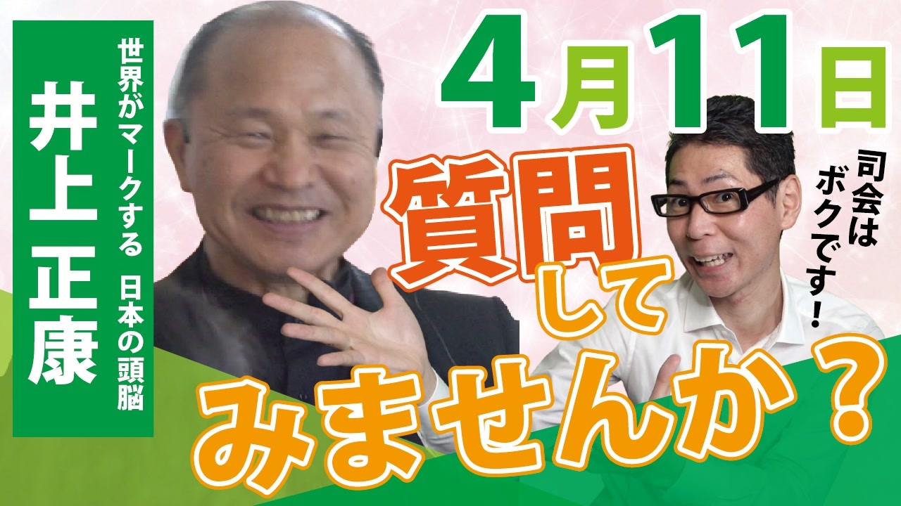 ”井上正康に聞きたい!”<br>「第3回全国100人のママさんzoom勉強会」募集開始《参加費無料》<br>◆開催日4月11日(月) 21:00~スタート<br>講師:井上正康 大阪市立大学名誉教授(分子病態学)<br>司会:元国会議員秘書Youtuber藤江<br>ゲスト:折本龍則氏 浦安市議会議員<br><br>現在各自治体から5-11歳へのファイザーワクチン接種券が送付されており<br>接種を悩まれる保護者の方が多くいらっしゃると思います。<br><br>本企画では接種を検討されている100人のママさんを募集。<br>講義を終えたのち、保護者の方の質問に井上正康がお答えします。<br><br>今回は千葉県在住の藤江さんと折本市議にも登場していただき<br>千葉のワクチンに関する実情も交えてお話します。<br><br>接種を悩まれてる保護者の方が、地元の市議に相談できるチャンスでもあります。<br>忙しくて情報を受け取れないママさん達に、是非シェア拡散をお願いします。<br><br>◆参加応募フォーム 前日4/10締切<br><a href="https://forms.gle/QyizhdnZh1B4h9LW6" target="_blank" rel="noopener nofollow">https://forms.gle/QyizhdnZh1B4h9LW6</a><br><br>◇井上正康LIVE適塾 過去の放送<br>「3/31 第2回全国100人のママさんzoom勉強会」<br><a href="https://www.youtube.com/channel/UCslsQFyNQ2EIacqQBRBPkaw" target="_blank" rel="noopener nofollow">https://www.youtube.com/channel/UCslsQFyNQ2EIacqQBRBPkaw</a><br>司会:愛国女子見習いチャンネルLizzy<br>ゲスト:沖縄有志医師の会 あざみのりこ先生<br><br>【問い合わせ先】井上正康LIVE適塾 事務局<br>inoue.masayasu.vaccine.questions@gmail.com<br>090-8346-0728<br>----------------------------------------<br><br><br>❏藤江の活動を支援していただける方向け<br>【藤江支援口座】のご案内<br>住信SBIネット銀行 ミカン支店(店番号103)<br>口座番号 3107694<br>口座名義 フジエ マサミツ<br><br>藤江のTwitter<br><a href="https://twitter.com/JINKOUZOUKA_jp" target="_blank" rel="noopener nofollow">https://twitter.com/JINKOUZOUKA_jp</a><br><br>藤江のニコニコ動画<br><a href="https://www.nicovideo.jp/user/5457748" target="_blank" rel="noopener nofollow">https://www.nicovideo.jp/user/5457748</a>