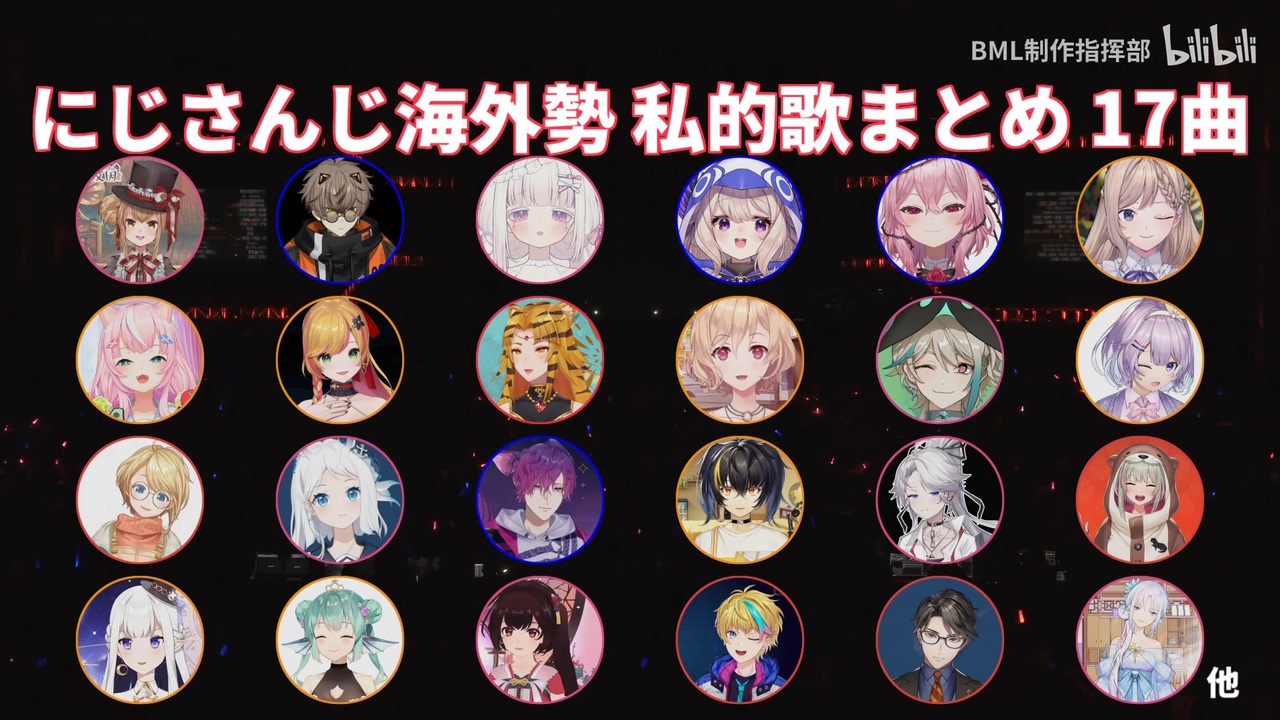 ▷にじさんじ 海外勢で個人的に好きな曲やカバーをまとめました。<br>VirtuaRealはStarやLinkも含みます。<br>60FPS化。一曲だいたい2分になるように切り取っているので、フルが気になる方は下のListからオリジナル動画をぜひ。前後編20分ずつに分けています(YouTubeだと40分)。<br>後編 [ <a href="https://www.nicovideo.jp/watch/sm40286778" class="watch">sm40286778</a> ]<br>次 #2 [ <a href="https://www.nicovideo.jp/watch/sm40456359" class="watch">sm40456359</a> ]<br><br>▷List (元動画へ飛びたい方はYouTubeの概要欄からどうぞ - <span style="font-size: 10px;"><a href="https://youtu.be/_mobRWMy5zM" target="_blank" rel="noopener nofollow">https://youtu.be/_mobRWMy5zM</a></span>)<br><a href="#" class="seekTime" data-seekTime="00:00" onclick="seekNicoPlayer('#00:00'); return false;">#00:00</a> - 01. 艾因Eine, YUKIri - Preserved Roses<br><a href="#" class="seekTime" data-seekTime="03:01" onclick="seekNicoPlayer('#03:01'); return false;">#03:01</a> - 02. Noctyx - Stuck In The Abyss<br><a href="#" class="seekTime" data-seekTime="05:14" onclick="seekNicoPlayer('#05:14'); return false;">#05:14</a> - 03. 勺Shaun - 乙女解剖<br><a href="#" class="seekTime" data-seekTime="07:48" onclick="seekNicoPlayer('#07:48'); return false;">#07:48</a> - 04. OBSYDIA - Black Out<br><a href="#" class="seekTime" data-seekTime="10:03" onclick="seekNicoPlayer('#10:03'); return false;">#10:03</a> - 05. NIJISANJI KR - All For Now!!<br><a href="#" class="seekTime" data-seekTime="12:57" onclick="seekNicoPlayer('#12:57'); return false;">#12:57</a> - 06. NIJISANJI ID - High Tension<br><a href="#" class="seekTime" data-seekTime="15:27" onclick="seekNicoPlayer('#15:27'); return false;">#15:27</a> - 07. 金克茜Jinxy, 九十九Tsukumo, 蕾米Remi - 再会江湖<br><a href="#" class="seekTime" data-seekTime="17:57" onclick="seekNicoPlayer('#17:57'); return false;">#17:57</a> - 08. Enna Alouette - 鳥の願い<br>ーーーーーーーーーーー前半ここまでーーーーーーーーーーー<br><span style="color: #666666;">21:31 - 09. 瑞娅Rhea - STAY<br>24:10 - 10. Miyu Ottavia - カタオモイ<br>26:33 - 11. Seffyna - 神っぽいな<br>29:01 - 12. Finana Ryugu - TSUNAMI<br>30:43 - 13. 阿萨Aza - HIP<br>33:02 - 14. 泠鳶yousa - 大喜<br>35:15 - 15. Layla Alstroemeria, Reza Avanluna - ロンリーユニバース<br>37:40 - 16. 祖娅纳惜Aria, 三无MarBlue, 浑元Rysn - 昭阳<br>39:47 - 17. Taka, Miyu, Rai - U do U</span><br><br>maji さん、Midwinter さん、結愛 さん、とめーと さん、リオ さん、月見うどん さん、101号室の宿泊人 さん、クウ さん、スー さん、のあ さん、樫折なごみ さん、nago さん、お猫様君ちゃん さん、<br>レイジ さん広告ありがとうございます