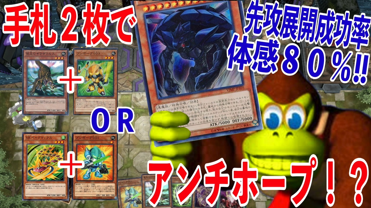 某オベリスクの人が先に動画を上げていて、ヒヤッとしたけどホッとしたので初投稿です。 <br><br>(追記)なんだこのコメント数!? なんだこの再生数!? なんだこの界隈!?<br><br>Jan兄貴 ×1<br>ウォールシャドウ兄貴 ×1<br>toFu兄貴 ×1<br>頭数兄貴 ×1<br>ハナソノ兄貴 ×2<br>ソマイタ兄貴 ×1<br>ぷにるはTOUGHなスライム兄貴 ×4<br>ネポ兄貴 ×1<br>二次元人ヤプール兄貴 ×6<br>相馬兄貴 ×1<br>マタ・ヌイ兄貴 ×1<br>二次元人ヤプール兄貴 ×3<br>マタ・ヌイ兄貴 ×1<br>FAIA兄貴 ×1<br>マタ・ヌイ兄貴 ×1<br>マタ・ヌイ兄貴 ×1<br>火星戦力軒並向回兄貴 ×1<br>火星戦力軒並向回兄貴 ×1<br>けるび兄貴 ×1<br><br>(2022/10/16 現在) 宣伝ありがとナス!<br>(宣伝を頂いた順に記載となります。一部表記を訂正しました。)<br><br>(2022/04/10 追記) ランキング1位&10000再生ありがとナス!<br><br>(2022/04/16 追記) アプデで簡素融合が追加。初動がより安定しました(勝てるとは言ってない)。<br> <br> <br><br>(前の動画)「ラウンチして?.mp4」<a href="https://www.nicovideo.jp/watch/sm40129025" class="watch">sm40129025</a>⇔(次の動画)<s>2ヶ月以内には作りたい</s>デスフェニ規制されたら<br>