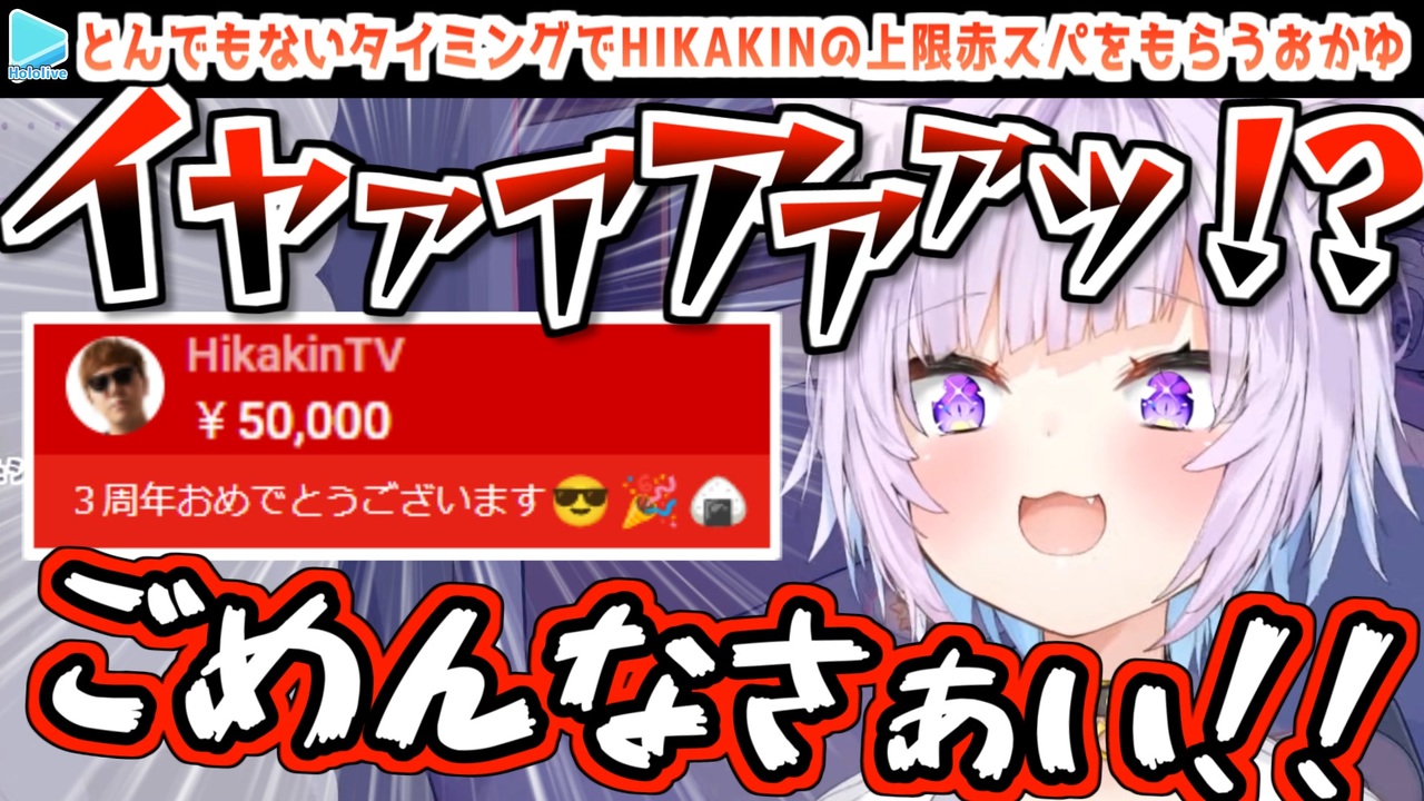 狙っていたようなタイミングで草<br>HIKAKINさんのスパチャを読むシーンもぜひどうぞ↓<br><a href="https://youtu.be/75DFo_2soNU?t=9171" target="_blank" rel="noopener nofollow">https://youtu.be/75DFo_2soNU?t=9171</a><br>【晩酌】打ち上げじゃ!甘えさせろ!オッラ!【猫又おかゆ/ホロライブ】<br><br>ウーバーイーツで高級焼き芋食べたら美味すぎて気絶☆【Uber Eats】<br><a href="https://youtu.be/8-eQ-iSsEjE" target="_blank" rel="noopener nofollow">https://youtu.be/8-eQ-iSsEjE</a><br><br>↓なぜHIKAKIN氏がスパチャしているのかはこちら<br>【逆凸】特大ご褒美あり!?告知もあり!?イクゾ!!【 #猫又おかゆ3周年記念 】<br><a href="https://youtu.be/77eZH3N2xBY?t=3574" target="_blank" rel="noopener nofollow">https://youtu.be/77eZH3N2xBY?t=3574</a><br><br>Okayu Ch. 猫又おかゆ <a href="https://t.co/JoeI3u9YjS" target="_blank" rel="noopener nofollow">https://t.co/JoeI3u9YjS</a><br>HikakinTV <a href="https://t.co/9x2enasqiT" target="_blank" rel="noopener nofollow">https://t.co/9x2enasqiT</a><br /><span style="color: #b7b7b7; font-size: 10px;">ホロライブ切り抜き/なめたけ <a href="https://t.co/CBwJLnYR2c" target="_blank" rel="noopener nofollow">https://t.co/CBwJLnYR2c</a></span>