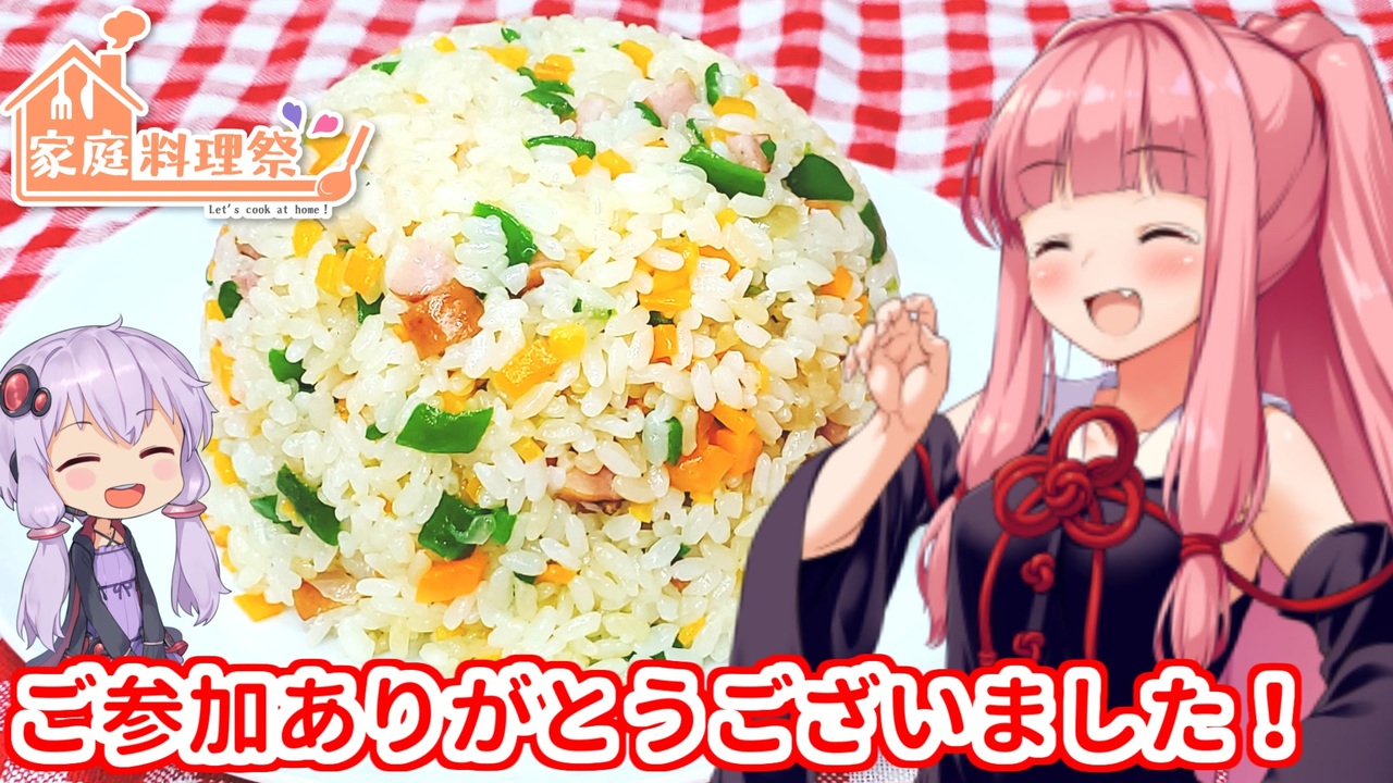 <span style="color: #ff0000; font-size: 16px;"><strong>家庭料理祭へたくさんのご参加、ありがとうございました!!</strong></span><br><br>この後(4/10~4/17)は後夜祭として<br>「家庭料理祭後発組」のタグで投稿ください。<br><br>視聴後の感想はTwitterに順次上げてます。<br>こちらにもまとめております。<br><a href="https://www.nicovideo.jp/mylist/72969661" target="_blank" rel="noopener nofollow">https://www.nicovideo.jp/mylist/72969661</a><br><a href="https://togetter.com/li/1867143" target="_blank" rel="noopener nofollow">https://togetter.com/li/1867143</a><br><br>初日:サッポロ一番塩ラーメン【<a href="https://www.nicovideo.jp/watch/sm40248284" class="watch">sm40248284</a>】<br><span style="color: #9900ff;">2日目:生姜焼き【<a href="https://www.nicovideo.jp/watch/sm40261736" class="watch">sm40261736</a>】←Ru-A担当</span><br>3日目:焼きうどん【<a href="https://www.nicovideo.jp/watch/sm40250484" class="watch">sm40250484</a>】<br>4日目:ビビンバ丼【<a href="https://www.nicovideo.jp/watch/sm40258008" class="watch">sm40258008</a>】<br>5日目:春雨スープ【<a href="https://www.nicovideo.jp/watch/sm40262730" class="watch">sm40262730</a>】<br><span style="color: #262626;">6日目:</span>豚キムチ【<a href="https://www.nicovideo.jp/watch/sm40268982" class="watch">sm40268982</a>】<br><span style="color: #262626;">7日目:</span>揚げ出し豆腐【<a href="https://www.nicovideo.jp/watch/sm40276781" class="watch">sm40276781</a>】<br><span style="color: #262626;">8日目:</span>ドライカレー【<a href="https://www.nicovideo.jp/watch/sm40283650" class="watch">sm40283650</a>】<br><span style="color: #9900ff;">最終日:炊き込みご飯【<a href="https://www.nicovideo.jp/watch/sm40288768" class="watch">sm40288768</a>】←Ru-A担当</span><br><br>いつもたくさんの再生・コメント・マイリス・広告・いいね、ありがとうございます!!!<br>特にコメントが面白くて楽しませてもらってます(>ω<)<br>動画を作る原動力(๑•̀ㅂ•́)و✧ゲット!<br><br>今回も素敵な動画を作らせてくれた茜ちゃんに感謝!<br>そして視聴してくださったあなたに最大の感謝を。<br><br>前:ドライカレー【<a href="https://www.nicovideo.jp/watch/sm40283650" class="watch">sm40283650</a>】<br>次:チーズ入りハムカツ【<a href="https://www.nicovideo.jp/watch/sm40357138" class="watch">sm40357138</a>】<br><br>【Ru-a(姉)と共同のアカウント】<br>ニコ動:<a href="https://www.nicovideo.jp/user/89325934" target="_blank" rel="noopener nofollow">https://www.nicovideo.jp/user/89325934</a><br>You Tube:<a href="https://www.youtube.com/channel/UC12q0n98NSyGykCbsP2G8ig" target="_blank" rel="noopener nofollow">https://www.youtube.com/channel/UC12q0n98NSyGykCbsP2G8ig</a><br>Twitter:<a href="https://twitter.com/witchdouble2" target="_blank" rel="noopener nofollow">https://twitter.com/witchdouble2</a>