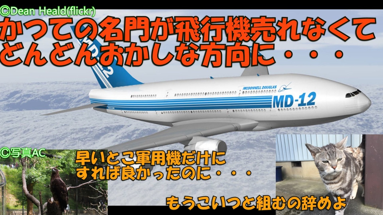 ※この動画はシリーズ物です。まだ第一章をご覧になっていない方はこちらをどうぞ→<a href="https://www.nicovideo.jp/watch/sm39816964" class="watch">sm39816964</a><br><br>出した新型機が総崩れで万策尽きかけた90年代のマクドネル・ダグラス民間機部門。しかしそれでも70年代後半から80年代はまだその技術力と顧客網を当てにしてヨーロッパのメーカーとの提携話が持ちかけられていました。<br><br>・・・が、その提携交渉もことごとく失敗に終わり、更に新型機のセールス失敗で窮地に陥ったマクドネル・ダグラスは絵に描いた餅な「ぼくのかんがえたさいきょうのりょかくき」計画で何とか顧客の関心を繋ぎ止めようとしますが逆効果に終わりました。<br>そして長年マクドネル・ダグラスを支えてきた軍用機部門も総崩れとなった事で、名門航空機メーカーの経営は行き詰まりを見せるのです。<br><br><br><br>第6章→<a href="https://www.nicovideo.jp/watch/sm40218971" class="watch">sm40218971</a><br>最終章後編→<a href="https://www.nicovideo.jp/watch/sm40398887" class="watch">sm40398887</a><br /><span style="color: #000000; font-size: 14px;">迷航空会社列伝</span><span style="color: #006699; font-size: 14px;"><a href="https://www.nicovideo.jp/mylist/24098760" target="_blank" rel="noopener">mylist/24098760</a></span><span style="color: #000000; font-size: 14px;"> 迷列車北陸編</span><span style="color: #006699; font-size: 14px;"><a href="https://www.nicovideo.jp/mylist/19084652" target="_blank" rel="noopener">mylist/19084652</a> </span><span style="color: #000000; font-size: 14px;">東海道交通戦争</span><span style="color: #006699; font-size: 14px;"><a href="https://www.nicovideo.jp/mylist/57958388" target="_blank" rel="noopener">mylist/57958388</a></span><span style="color: #000000; font-size: 14px;"> 交通機関の栄枯盛衰 </span><a href="https://www.nicovideo.jp/mylist/66898301" target="_blank" rel="noopener">mylist/66898301</a><br><span style="color: #000000; font-size: 14px;">ブログ→</span><span style="color: #006699; font-size: 14px;"><a href="http://www.meihokuriku-alps.com" target="_blank" rel="noopener nofollow">http://www.meihokuriku-alps.com</a></span><br>note→<a href="https://note.com/meihokuriku" target="_blank" rel="noopener nofollow">https://note.com/meihokuriku</a><br><span style="color: #000000; font-size: 14px;">使用BGM<br>甘茶の音楽工房様 </span><span style="color: #006699; font-size: 14px;"><a href="http://amachamusic.chagasi.com/index.html" target="_blank" rel="noopener nofollow">http://amachamusic.chagasi.com/index.html</a></span><br><span style="color: #000000; font-size: 14px;">魔王魂様 </span><span style="color: #006699; font-size: 14px;"><a href="https://maoudamashii.jokersounds.com/list/bgm5.html" target="_blank" rel="noopener nofollow">https://maoudamashii.jokersounds.com/list/bgm5.html</a></span>