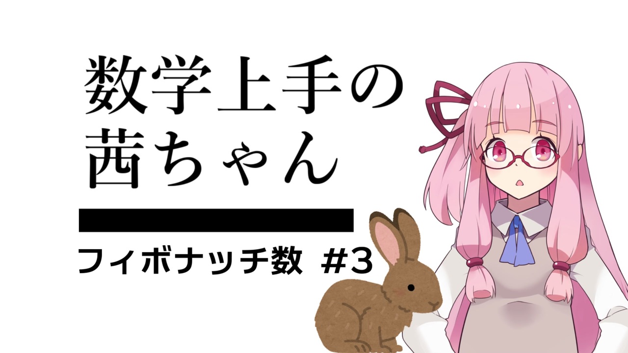 フィボナッチ数の最終回です。うさぎは登場しません。<br><br><span style="color: #ff0000;">【宣伝】</span><br><span style="color: #262626;">5月下旬に開催される、こちらの投稿祭に参加します!<br>【企画告知】ソフトウェアトーク理工サイド交流祭<br><a href="https://www.nicovideo.jp/watch/sm40175317" class="watch">sm40175317</a><br><br>主催の壁檸檬さん(</span><a href="https://www.nicovideo.jp/user/97374083" target="_blank" rel="noopener">user/97374083</a><span style="color: #262626;">)は主に複素解析の解説動画を投稿されています。<br>【数学】ゆかきずの複素数の世界 #1【VOICEROID解説】<br><a href="https://www.nicovideo.jp/watch/sm39613834" class="watch">sm39613834</a></span><br><br>【使用スクリプト】<br>AviUtl + 拡張編集 + ブラウザー = ??? <br><a href="https://www.nicovideo.jp/watch/sm38772089" class="watch">sm38772089</a><br><br>【AviUtlスクリプト】MarkdownEX【数式・絵文字】<br><a href="https://www.nicovideo.jp/watch/sm38814110" class="watch">sm38814110</a><br><br>前:<a href="https://www.nicovideo.jp/watch/sm40003521" class="watch">sm40003521</a><br>次:<a href="https://www.nicovideo.jp/watch/sm40498087" class="watch">sm40498087</a>