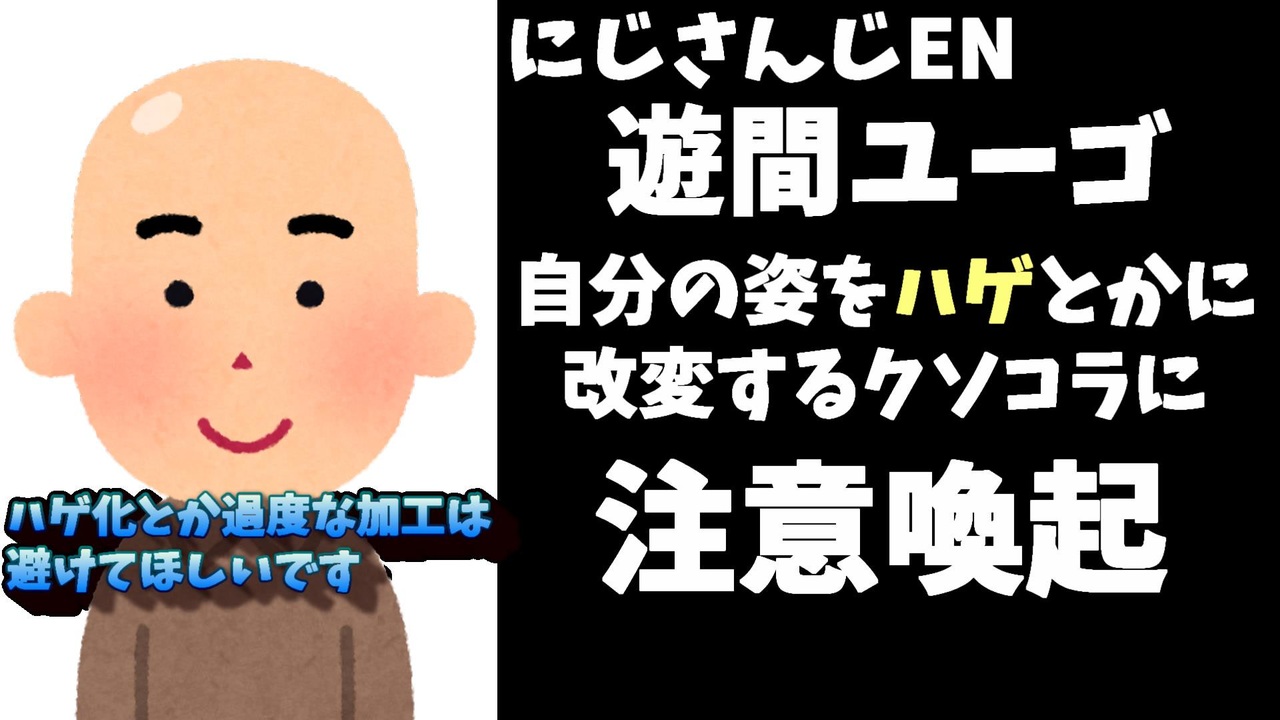 2022年4月13日、にじさんじ所属のバーチャルYouTuberの遊間ユーゴさんが、自分の姿を過度に改変するクソコラ行為に対しての注意喚起を自身のツイッターにて行われました。<br><br>引用<br><a href="https://twitter.com/Yugo_Asuma/status/1514056888161239044" target="_blank" rel="noopener nofollow">https://twitter.com/Yugo_Asuma/status/1514056888161239044</a><br><br>今後の 製作予定動画<br>元にじさんじ運営幹部いわなが社長、新しい箱を立ち上げる<br>にじさんじ×DLsite ASMRコラボ5~6弾販売中止<br>【悲報】鳴神裁「裁判をすっ飛ばして逮捕はあり得ない」<br>にじさんじ引退者まとめPart.3<br>にじさんじとストーカー被害まとめ<br>【悲報】にじさんじライバー、一本満足バーを一度に二本食べてしまう<br><br>公開マイリスト<br>1 <a href="https://www.nicovideo.jp/mylist/66855587" target="_blank" rel="noopener nofollow">https://www.nicovideo.jp/mylist/66855587</a><br>2 <a href="https://www.nicovideo.jp/mylist/71980663" target="_blank" rel="noopener nofollow">https://www.nicovideo.jp/mylist/71980663</a><br>Youtube <a href="https://www.youtube.com/channel/UCzYQPx8MeE99DUkW9Y_txJw" target="_blank" rel="noopener nofollow">https://www.youtube.com/channel/UCzYQPx8MeE99DUkW9Y_txJw</a><br>twitter <a href="https://twitter.com/V_Virgin_Mary" target="_blank" rel="noopener nofollow">https://twitter.com/V_Virgin_Mary</a><br><br>使用素材<br>高品質なフリー動画素材 - Pixabay <a href="https://pixabay.com/ja/videos" target="_blank" rel="noopener nofollow">https://pixabay.com/ja/videos</a><br>いらすとや様 <a href="https://www.irasutoya.com/" target="_blank" rel="noopener nofollow">https://www.irasutoya.com/</a>