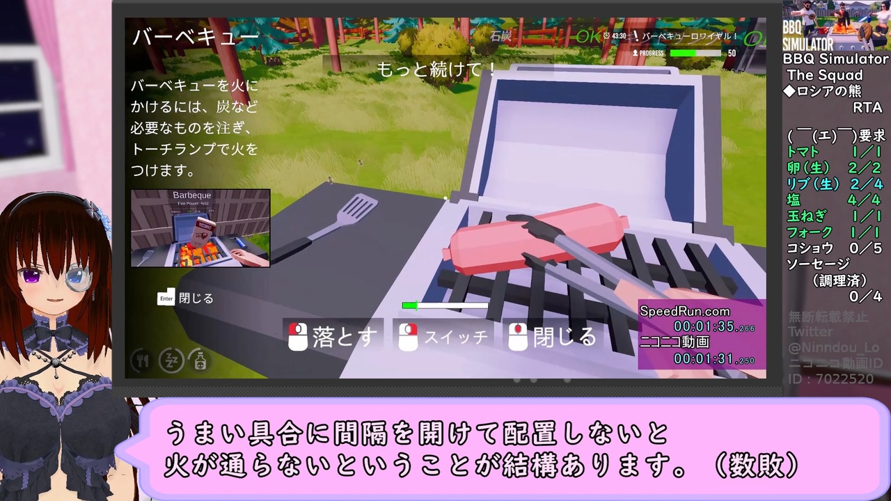 雑食にも限度あるでしょ <br><br>ゲームの正式名称は BBQ Simulator The Squad です。<br><br>先駆者様(閉廷兄貴)→<a href="https://www.nicovideo.jp/watch/sm40125639" class="watch">sm40125639</a><br><br><br>◆生放送アーカイブ動画<br>初見→<a href="https://www.nicovideo.jp/watch/sm40297795" class="watch">sm40297795</a><br>2日目→<a href="https://www.nicovideo.jp/watch/sm40300126" class="watch">sm40300126</a><br>◆一緒にプレイ<br>閉廷→<a href="https://www.nicovideo.jp/user/349500" target="_blank" rel="noopener">user/349500</a><br>アサリ→<a href="https://www.nicovideo.jp/user/62611310" target="_blank" rel="noopener">user/62611310</a><br><br>開幕使用したBGM→<a href="https://dova-s.jp/bgm/play16392.html" target="_blank" rel="noopener nofollow">https://dova-s.jp/bgm/play16392.html</a><br>広告者様紹介で使用したBGM→<a href="https://commons.nicovideo.jp/works/nc214927" target="_blank" rel="noopener">nc214927</a><br><br>無編集版(You Tube)→<a href="https://youtu.be/pxXsVmBB3R4" target="_blank" rel="noopener nofollow">https://youtu.be/pxXsVmBB3R4</a><br>全RTAマイリス⇒<a href="https://www.nicovideo.jp/mylist/69428960" target="_blank" rel="noopener">mylist/69428960</a><br><br>カスタムオーダーメイド3D2<br>及びバーチャルアバタースタジオを使用しています。