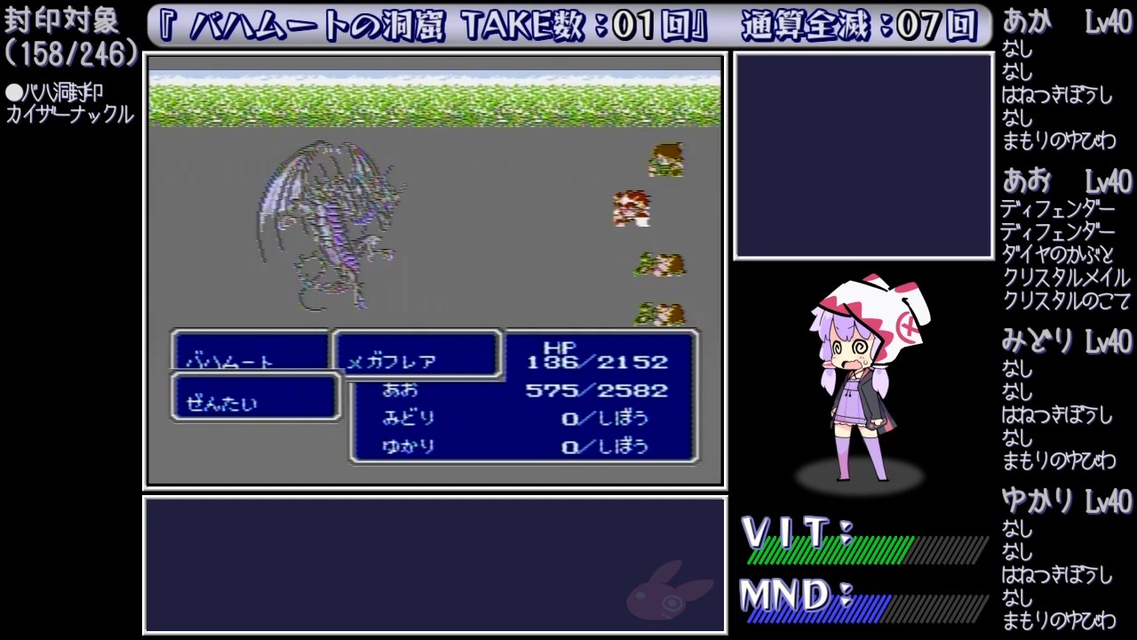 サロニア地下迷路・ドールの湖・古代遺跡・暗黒の洞窟攻略<br>FF3 Newbieですがよろしくお願いいたしします。<br><br>【縛りルール】<br>・1Lvアップごとにひとつアイテム/装備/魔法/コマンド封印<br>・封印対象は全246項目(イベント進行アイテム等は除外)<br>・全滅時は最終セーブ時の封印状態から再開(ラスダン対策)<br><br><a href="https://www.nicovideo.jp/watch/sm40288008" class="watch">sm40288008</a>←前回|<a href="https://www.nicovideo.jp/mylist/71407571" target="_blank" rel="noopener">mylist/71407571</a>|次回→<a href="https://www.nicovideo.jp/watch/sm41169544" class="watch">sm41169544</a><br><br>part1→<a href="https://www.nicovideo.jp/watch/sm39040436" class="watch">sm39040436</a><br><br>稲守様にトップ絵・導師フードを描いていただきました。<br>作者様の情報等記載のニコニコ静画URL→<a href="https://seiga.nicovideo.jp/comic/56290" target="_blank" rel="noopener">comic/56290</a>