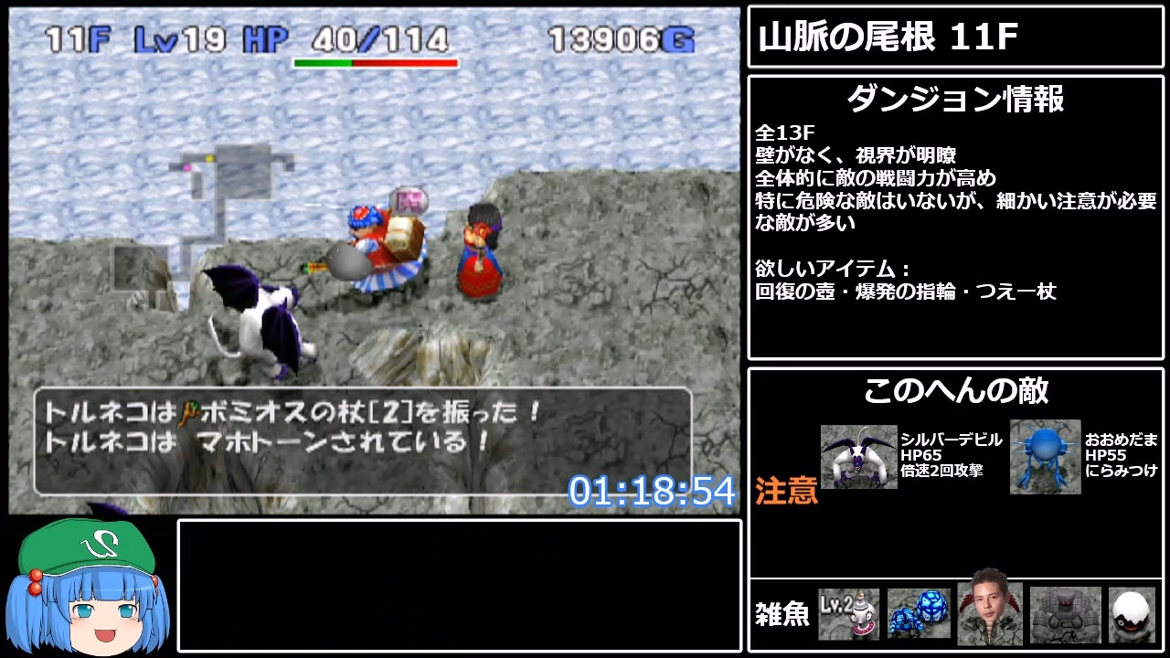 3大忘れがちな状態異常 マホトーン・胃下垂・よくみえ<br>山脈の尾根 ~ ポポロ編開始まで<br><br>計測開始:「新しく冒険の書をつくる」を選択した瞬間<br>計測終了:ENDが表示されたら<br><br>前回→<a href="https://www.nicovideo.jp/watch/sm40250126" class="watch">sm40250126</a><br>次回→<a href="https://www.nicovideo.jp/watch/sm40378597" class="watch">sm40378597</a><br>part1→<a href="https://www.nicovideo.jp/watch/sm40100730" class="watch">sm40100730</a><br><br>マイリスト→<a href="https://www.nicovideo.jp/mylist/72792843" target="_blank" rel="noopener">mylist/72792843</a><br><br>twitter(冒険の切り抜きを上げたり進捗報告だったり)<br><a href="https://twitter.com/hogefuga0808" target="_blank" rel="noopener nofollow">https://twitter.com/hogefuga0808</a><br><br>Youtube(たまに配信してます)<br><a href="https://www.youtube.com/channel/UCdClYLpE9Q56HTegRGxPPbQ" target="_blank" rel="noopener nofollow">https://www.youtube.com/channel/UCdClYLpE9Q56HTegRGxPPbQ</a><br><br>無編集版<br><a href="https://www.youtube.com/watch?v=qLY_d-XkZpA" target="_blank" rel="noopener nofollow">https://www.youtube.com/watch?v=qLY_d-XkZpA</a>