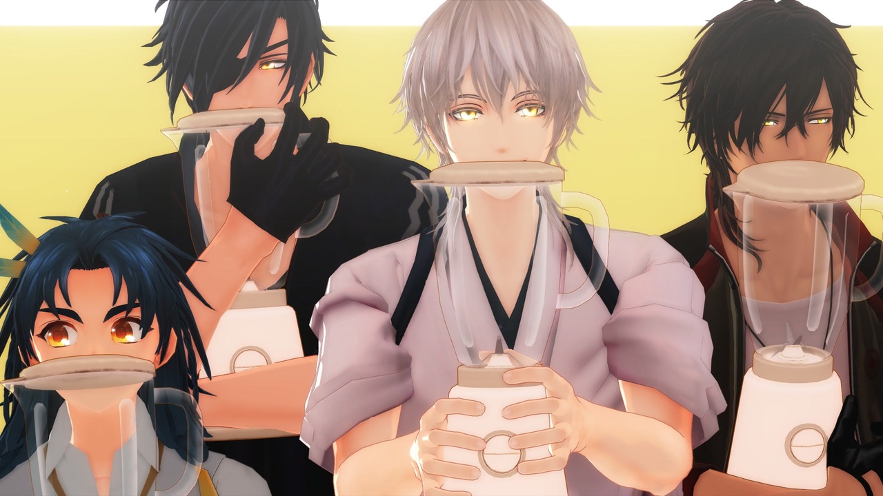 <br><span style="color: #ff0000; font-size: 18px;"><strong>※一部、ジャンル混合シーンあり(同空間にはいません。画面越しです)</strong></span><br><br><br><span style="font-size: 16px;"><strong>sam式鶴丸さん4周年おめでとうございます…!</strong></span><br>かっこよくかわいく表情豊かにいつも生きてくれてありがとうございます!<br>今回鶴さんが好きそうな企画をやっていただきました。<br>いわゆる闇鍋系の動画です。なんでも許せる方向けです。<br>苦手な方はご視聴をお控えください。<br><br>(音に合わせての手つけモーションや外部親設定は相変わらず苦手なのでカクカク動くとこもありますが温かい目で見ていただけると嬉しいです…)<br><br><br>今回一緒に出ていただいた銀魂の土方さんはsam様がモデルさんを配布されています。<br>(銀時さんはKei様、沖田くんはaokana様)<br>機会があって少しずつアニメを見ているのですがとてもおもしろいですね…!<br>拝見されたことのない方はぜひ!おすすめです✨<br><br><br><br>自本丸の性質上、いたずら好きな鶴丸さん、かわいい光忠さんや馴れ合う伽羅ちゃん(仲良しの伊達組)が出てきます。苦手な方はご視聴をお控えください。<br>【画質が悪いときは動画下の設定から変えられます】<br><br><br>お借りさせていただいたものは動画内・コンテンツツリーにてご確認いただけます。<br>製作者様、いつもお借りさせていただきありがとうございます。今年もよろしくお願いします。<br><br>※他の見てくださる方を不快にさせるような言葉やお借りさせていただいたものへの批判・中傷、腐コメなどはご遠慮ください。何かありましたらtwitterまでお願いします(@aya10748680)<br>