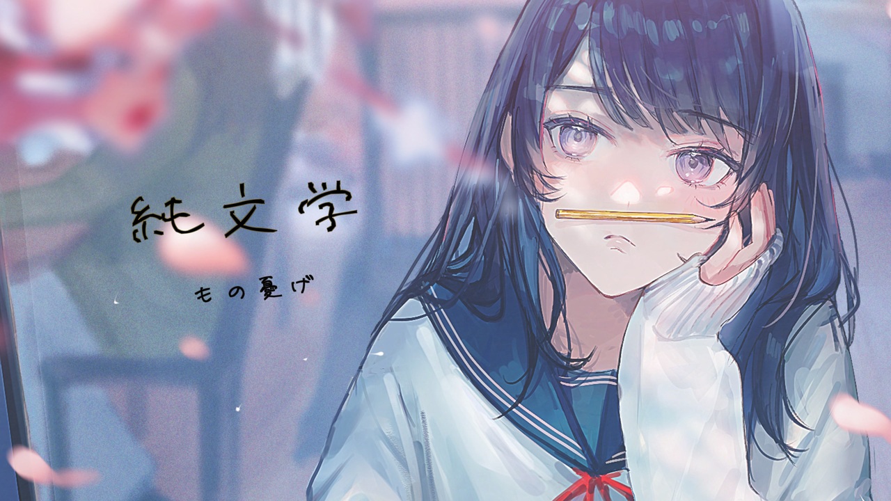 三作目 <br><br>-絵師-<br> ツキイロ(@Hinoirosan)<br><br>「あいしてた」<br>そんな五文字に収まってたまるか 長編小説なのに<br>君からの返事は 決まっていつも<br>つぎはぎ シンプルで なんか悔しくなる<br><br>Hの濃さじゃ到底描けない Bでもまだどこか物足りない<br>君を描けない人生なんかいらない <br>どうかしてる 升目も罫線も飛び越えていきたい<br>句読点すら逃げ出すような 裸の愛をください<br><br>もっと素直に言えたなら 深読みせずにイケたなら<br>バカみたいだ 君だけでよかった<br>書いては消して繰り返し 最後の強がりで五文字<br>送信した「さようなら」<br><br>出逢った頃は書き順を守って 正しく愛し愛されていたよね<br>ショートカットできない思いで<br>書き殴る黒は仰々しく 編集者も読者も置きざり<br>滲んだインク擦れる頃 純文学も終わる<br><br>もっと素直に聞かせてよ 推敲せずに出していいよ<br>バカみたいだ 私じゃダメなのに<br>何も語らぬ横顔 ずるいよ やっぱり五文字だけ<br>返ってきた「ありがとう」<br><br>誤字や脱字すら愛おしい<br>そんな日々が いつしか二人にもありました。<br>パタンと音たて 君は消えてった 付箋つけたまま…<br><br>今日は素直に言えるかな 文脈なんて無視してさ<br> 「だいきらい」と<br>この後に及び強がって 薄い五文字を返しても<br>情けないな 行間が喋りだす…<br>脈絡もまとまりもない ただの駄文だな<br><br>割愛できない渇愛が 君を描く 愛を描かせる<br><br>「あいしてる」<br><br>