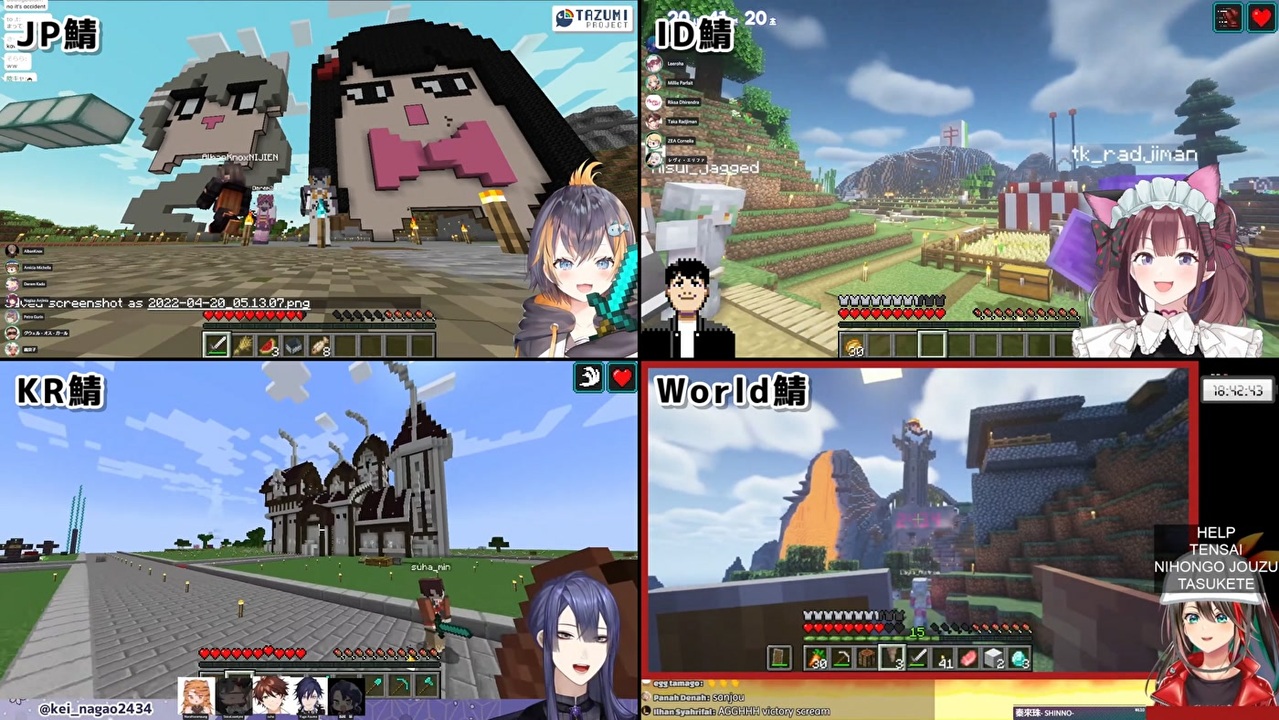 世界メチャクチャ広がったな~<br>今後にじ鯖マイクラが数倍にぎやかになりそうで楽しみだ!<br><br>本家参考動画<br>・ペトラ・グリン<br>【MINECRAFT】LET'S BUILD A GLOBAL TAZUMI STATUE□□【NIJISANJI EN | Petra Gurin】<br><a href="https://youtu.be/IHGLMIgTTnQ" target="_blank" rel="noopener nofollow">https://youtu.be/IHGLMIgTTnQ</a><br>・イ・ロハ<br>【Minecraft】 にじさんじのみんなと巨大田角を立てるぞ!⛏ [NIJISANJIKR/イロハ]<br><a href="https://youtu.be/Sprkm2kMBy8" target="_blank" rel="noopener nofollow">https://youtu.be/Sprkm2kMBy8</a><br>・長尾景<br>【マイクラ】社長錬成配信【長尾景/にじさんじ】<br><a href="https://youtu.be/edAHWlg8Cbs" target="_blank" rel="noopener nofollow">https://youtu.be/edAHWlg8Cbs</a><br>・エトナ・クリムソン<br>【Minecraft】ONE WORLD EVENT! Building this statue with everyone!!【NIJISANJI / にじさんじ / エトナ・クリムソン視点】<br><a href="https://youtu.be/S0ZGer-q8xM" target="_blank" rel="noopener nofollow">https://youtu.be/S0ZGer-q8xM</a><br><br>参考元チャンネル&Twitter<br>・ペトラ・グリン<br><a href="https://www.youtube.com/channel/UCgA2jKRkqpY_8eysPUs8sjw" target="_blank" rel="noopener nofollow">https://www.youtube.com/channel/UCgA2jKRkqpY_8eysPUs8sjw</a><br><a href="https://twitter.com/Petra_Gurin" target="_blank" rel="noopener nofollow">https://twitter.com/Petra_Gurin</a><br>・イ・ロハ<br><a href="https://www.youtube.com/channel/UCClwIqTUn5LDpFucHyaAhHg" target="_blank" rel="noopener nofollow">https://www.youtube.com/channel/UCClwIqTUn5LDpFucHyaAhHg</a><br><a href="https://twitter.com/rohalee2434" target="_blank" rel="noopener nofollow">https://twitter.com/rohalee2434</a><br>・長尾景<br><a href="https://www.youtube.com/channel/UCXW4MqCQn-jCaxlX-nn-BYg" target="_blank" rel="noopener nofollow">https://www.youtube.com/channel/UCXW4MqCQn-jCaxlX-nn-BYg</a><br><a href="https://twitter.com/kei_nagao2434" target="_blank" rel="noopener nofollow">https://twitter.com/kei_nagao2434</a><br>・エトナ・クリムソン<br><a href="https://www.youtube.com/channel/UCjFu-9GHnabzSFRAYm1B9Dw" target="_blank" rel="noopener nofollow">https://www.youtube.com/channel/UCjFu-9GHnabzSFRAYm1B9Dw</a><br><a href="https://twitter.com/etna_crimson" target="_blank" rel="noopener nofollow">https://twitter.com/etna_crimson</a><br><br>ニコニコのダイコンマンリスト<br>「バーチャルYouTuberシリーズ」↓<br><a href="https://www.nicovideo.jp/mylist/62551838" target="_blank" rel="noopener">mylist/62551838</a><br>「バーチャルYouTuberシリーズ2」↓<br><a href="https://www.nicovideo.jp/mylist/67858437" target="_blank" rel="noopener">mylist/67858437</a><br>「バーチャルYouTuberシリーズ3」↓<br><a href="https://www.nicovideo.jp/mylist/71340675" target="_blank" rel="noopener">mylist/71340675</a><br><br>ダイコンマンのTwitter<br><a href="https://twitter.com/Daikon_Man_V" target="_blank" rel="noopener nofollow">https://twitter.com/Daikon_Man_V</a>