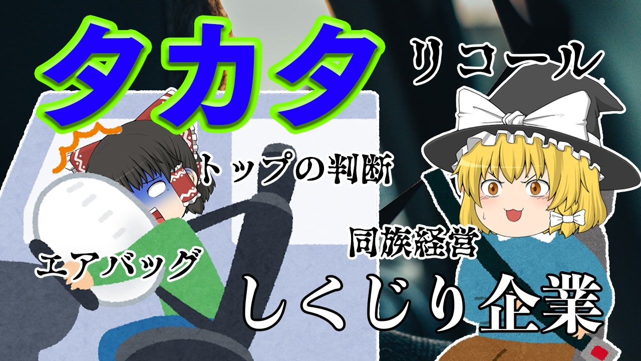 どうも係長です。<br><br>シートベルトは後部座席でもしましょうね。<br><br>今回はかつてシートベルトやエアバッグなどを生産していたタカタについて解説します。<br><br>フォロー、マイリスお願いします。<br />ニコニコチャンネル始めました!!→<a href="https://ch.nicovideo.jp/cakachannel" target="_blank" rel="noopener nofollow">https://ch.nicovideo.jp/cakachannel</a> <br><br><span style="font-size: 13px;">Youtubuチャンネル(先行配信)→ <a href="https://goo.gl/fD5iYe" target="_blank" rel="noopener nofollow">https://goo.gl/fD5iYe</a></span><br>Youtubeサブチャンネル(VTuber配信)→<a href="https://bit.ly/2nQnNrQ" target="_blank" rel="noopener nofollow">https://bit.ly/2nQnNrQ</a><br>Youtubeゲームチャンネル→<a href="https://bit.ly/2oCMQz2" target="_blank" rel="noopener nofollow">https://bit.ly/2oCMQz2</a><br><span style="color: #000000; font-size: 13px;">X:(雑談・更新情報・なんかあれば等)→<a href="https://twitter.com/cakari14" target="_blank" rel="noopener nofollow">https://twitter.com/cakari14</a></span><br>ブログ→<a href="http://www.cakaricho.com/" target="_blank" rel="noopener nofollow">http://www.cakaricho.com/</a><br>コミュニティ→co1975392