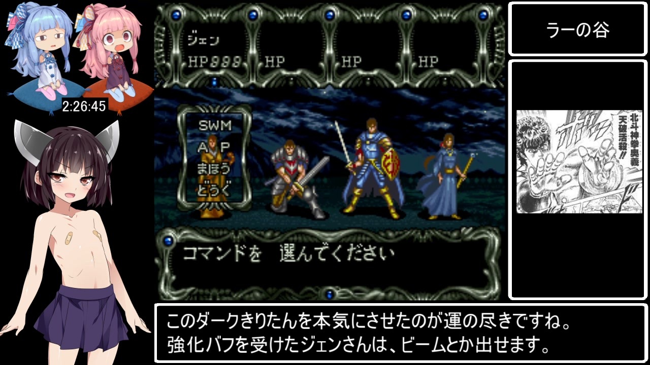 「ツンの期間が長いほど、デレの破壊力が高くなる。」<br>(ソレナンテ=エ=ロゲ)<br><br><br>お世話になった攻略サイト<br> <a href="http://darkkingdom.info/index.html" target="_blank" rel="noopener nofollow">http://darkkingdom.info/index.html</a><br> <a href="http://makainyumon.web.fc2.com/cheat/#sfc" target="_blank" rel="noopener nofollow">http://makainyumon.web.fc2.com/cheat/#sfc</a><br><br><br>前回:<a href="https://www.nicovideo.jp/watch/sm40317989" class="watch">sm40317989</a><br>次回:<a href="https://www.nicovideo.jp/watch/sm40392224" class="watch">sm40392224</a><br><br>