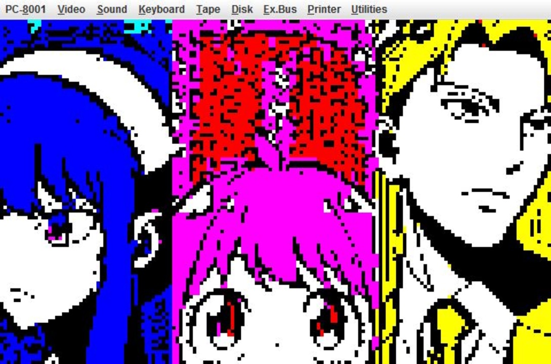 PC-8001用プログラムはこちらから→<a href="https://bugfire2009.ojaru.jp/mml.html#music" target="_blank" rel="noopener nofollow">https://bugfire2009.ojaru.jp/mml.html#music</a><br><br><a href="https://www.nicovideo.jp/watch/sm40365162" class="watch">sm40365162</a>に、PC-8001のセミグラスキャン画像(160x100、7色)を組み合わせてみました。<br><br>オールマシン語ですが、ツールを使ってアセンブラソースとデータを自動生成しています。<br><br>(補足1)動画はWindows上のPC-8001エミュレータの画面と音になります。ソフトは共通なので実機(BEEP音を3つ出すのにPCG8100が必要)やPasocomMiniでも同じように動きます。<br><br>(補足2)昔のPCにはDOSやWindowsは無いので、BASICがOSの役割もかねています。起動するとBASICが立ち上がりそこからマシン語モニタを起動し、テープロード(L命令)&実行(G命令)になります。<br><br>セミグラ画像作成およびBGMとの組み合わせ用のツールはこのへんに置いておきます→<a href="https://bugfire2009.ojaru.jp/semigra/index.html" target="_blank" rel="noopener nofollow">https://bugfire2009.ojaru.jp/semigra/index.html</a><br>