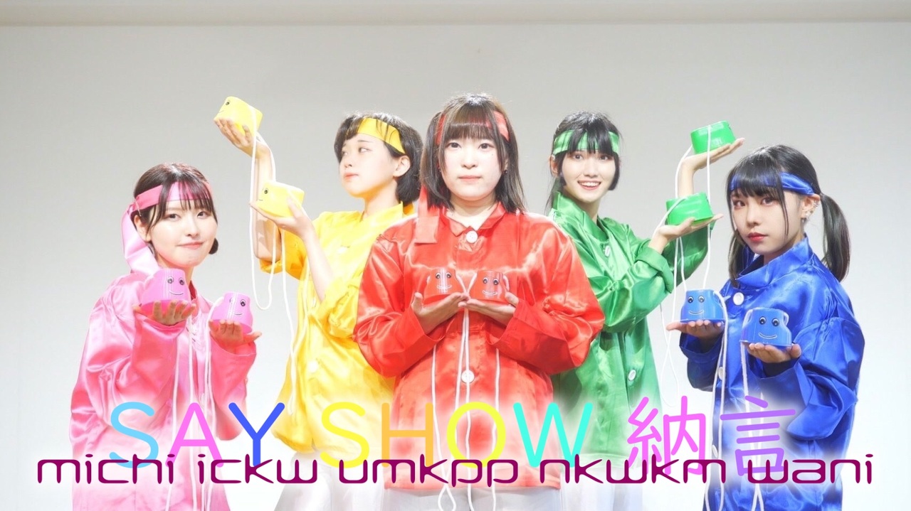 <span style="color: #ff0000; font-size: 18px;">新グループ SAY SHOW 納言 爆誕☆</span><br><br>KT Zepp Yokohama でのデビューを目標に、集いし五人の踊り手<br><br><strong><u>ダンマスワールド4とボカコレ2022春に挑戦!<br>ぽっくりの上から頂点めざします! 再生、コメント、マイリスト、いいねで応援よろしくお願いします!</u></strong><br><br>楽曲本家 <a href="https://www.nicovideo.jp/watch/sm28974414" class="watch">sm28974414</a> 八王子P様<br>振り付け本家 <a href="https://www.nicovideo.jp/watch/sm29151551" class="watch">sm29151551</a> Q'ulle,めろちん様<br><br><span style="color: #e06666;">【蒙古タンメンレッド担当】<br>全ての元凶!責任は俺がとる!リーダー市川<br>Twitter:<a href="https://twitter.com/I_C_K_W" target="_blank" rel="noopener nofollow">https://twitter.com/I_C_K_W</a><br>マイリスト:<a href="https://www.nicovideo.jp/mylist/35474738" target="_blank" rel="noopener">mylist/35474738</a></span><br><br><span style="color: #ff00ff;">【桜でんぶピンク担当】<br>私の表情筋みさらせや~!!! ねこわかめ<br>Twitter:<a href="https://twitter.com/nekowakame_02" target="_blank" rel="noopener nofollow">https://twitter.com/nekowakame_02</a><br>マイリスト:<a href="https://www.nicovideo.jp/mylist/39344936" target="_blank" rel="noopener">mylist/39344936</a></span><br><br><span style="color: #f1c232;">【きなこ棒イエロー担当】<br>このステージは未知のもの!安藤未知<br>Twitter:<a href="https://twitter.com/ndou_u" target="_blank" rel="noopener nofollow">https://twitter.com/ndou_u</a><br>マイリスト:<a href="https://www.nicovideo.jp/mylist/72676468" target="_blank" rel="noopener">mylist/72676468</a></span><br><br><span style="color: #4a86e8;">【ソーダ餅ブルー担当】<br>きみのはーとに“ろっく”おん! わに<br>Twitter:<a href="https://twitter.com/waniwani_0202" target="_blank" rel="noopener nofollow">https://twitter.com/waniwani_0202</a><br>マイリスト:<a href="https://www.nicovideo.jp/mylist/65221366" target="_blank" rel="noopener">mylist/65221366</a></span><br><br><span style="color: #6aa84f;">【公衆電話グリーン担当】<br>マジキチスマイルで世界を照らす!梅かっぱ<br>Twitter:<a href="https://twitter.com/umekapxtupa" target="_blank" rel="noopener nofollow">https://twitter.com/umekapxtupa</a><br>マイリスト:<a href="https://www.nicovideo.jp/mylist/31046193" target="_blank" rel="noopener">mylist/31046193</a></span>