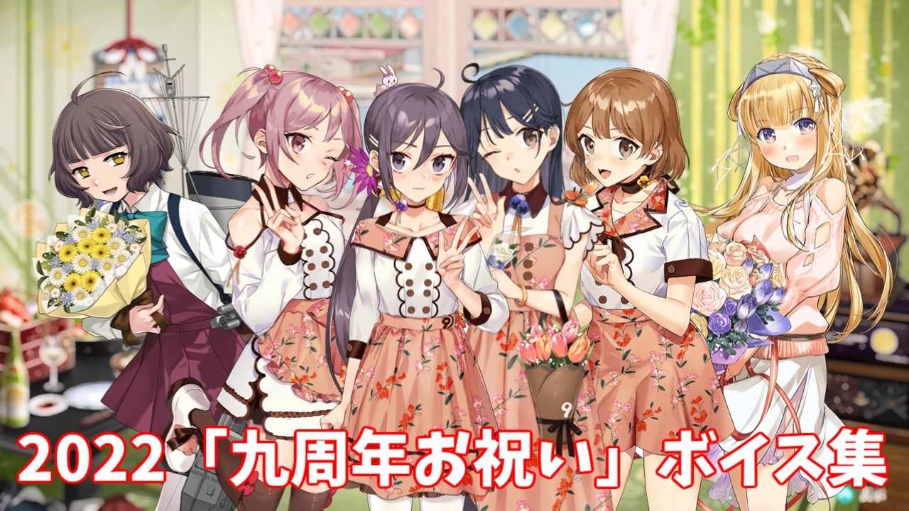 艦これ9周年おめでとうございます! 76隻の新規「九周年専用お祝い」ボイス集です。<br>2021の「八周年」ボイスはこちら→ <a href="https://www.nicovideo.jp/watch/sm38630118" class="watch">sm38630118</a><br><br>限定ボイス(図鑑No.順)<br><a href="#" class="seekTime" data-seekTime="00:04" onclick="seekNicoPlayer('#00:04'); return false;">#00:04</a> 日向 雪風 赤城 蒼龍 深雪 大井 北上 扶桑 山城 古鷹 加古 飛鷹 隼鷹 白露 時雨 陽炎 不知火 黒潮 <br><a href="#" class="seekTime" data-seekTime="05:44" onclick="seekNicoPlayer('#05:44'); return false;">#05:44</a> 大和 秋雲 長波 阿賀野 能代 矢矧 酒匂 時津風 浜波 藤波 Sheffield 神鷹 岸波 早波 冬月 Gambier_Bay Johnston<br><a href="#" class="seekTime" data-seekTime="09:56" onclick="seekNicoPlayer('#09:56'); return false;">#09:56</a> 平戸 Nelson Gotland Maestrale 日進 峯雲 Houston Atlanta Honolulu De_Ruyter South_Dakota Hornet 屋代 Perth Helena<br><a href="#" class="seekTime" data-seekTime="13:24" onclick="seekNicoPlayer('#13:24'); return false;">#13:24</a> 神州丸 秋霜 薄雲 有明 迅鯨 長鯨 伊47 第四号海防艦 第三〇号海防艦 松 竹 梅 桃 <br><a href="#" class="seekTime" data-seekTime="16:32" onclick="seekNicoPlayer('#16:32'); return false;">#16:32</a> Scirocco Washington Northampton 巻波 玉波 涼波 Conte_di_Cavour 伊203 雲鷹 Victorious Scamp 昭南 山汐丸<br><br>【新規絵】<br><a href="#" class="seekTime" data-seekTime="20:00" onclick="seekNicoPlayer('#20:00'); return false;">#20:00</a> (朧 曙 漣 潮 長波 海風改二 岸波 Fletcher)<br><br>前|浦波改二 追加ボイス&2022「春」ボイス集 (4/1アップデート) <a href="https://www.nicovideo.jp/watch/sm40264015" class="watch">sm40264015</a><br><strong>次|磯波改二 追加ボイス集 (5/13アップデート)</strong> <a href="https://www.nicovideo.jp/watch/sm40471314" class="watch">sm40471314</a><br><br>艦これ追加ボイス集 マイリスト(<a href="https://www.nicovideo.jp/mylist/40513442" target="_blank" rel="noopener">mylist/40513442</a>)<br>シリーズ(<a href="https://www.nicovideo.jp/series/34200" target="_blank" rel="noopener">series/34200</a>)<br><br>Youtubeでも活動しています。<br>チャンネル <a href="https://www.youtube.com/channel/UCTYYB9O7hiQlH6Ee-Xxlbpg" target="_blank" rel="noopener nofollow">https://www.youtube.com/channel/UCTYYB9O7hiQlH6Ee-Xxlbpg</a><br>