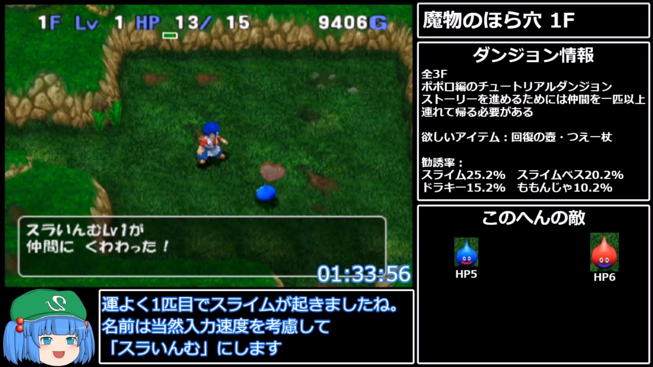 やってる最中は上手くできてると思ってたのにいざ録画を見返してみるとガバだらけってことありますあります<br>魔物のほら穴 ~ 密林の小屋まで<br><br>計測開始:「新しく冒険の書をつくる」を選択した瞬間<br>計測終了:ENDが表示されたら<br><br>前回→<a href="https://www.nicovideo.jp/watch/sm40341997" class="watch">sm40341997</a><br>次回→<a href="https://www.nicovideo.jp/watch/sm40418059" class="watch">sm40418059</a><br>part1→<a href="https://www.nicovideo.jp/watch/sm40100730" class="watch">sm40100730</a><br><br>マイリスト→<a href="https://www.nicovideo.jp/mylist/72792843" target="_blank" rel="noopener">mylist/72792843</a><br><br>twitter(冒険の切り抜きを上げたり進捗報告だったり)<br><a href="https://twitter.com/hogefuga0808" target="_blank" rel="noopener nofollow">https://twitter.com/hogefuga0808</a><br><br>Youtube(たまに配信してます)<br><a href="https://www.youtube.com/channel/UCdClYLpE9Q56HTegRGxPPbQ" target="_blank" rel="noopener nofollow">https://www.youtube.com/channel/UCdClYLpE9Q56HTegRGxPPbQ</a><br><br>無編集版<br><a href="https://www.youtube.com/watch?v=qLY_d-XkZpA" target="_blank" rel="noopener nofollow">https://www.youtube.com/watch?v=qLY_d-XkZpA</a>