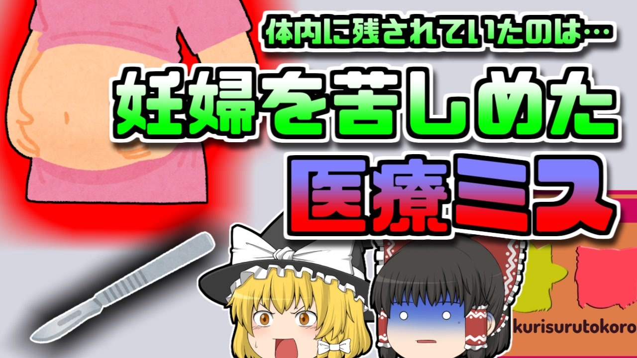今回紹介するのは、以前からリクエストがありました、「医療ミス」に関する事例です。<br>ロシア連邦極東部に位置する「ウラジオストク」ではこの日、二人目の赤ちゃんを身ごもった女性「A」さんの帝王切開手術が行われていました。<br>この赤ちゃんは、出産予定日直前でも「逆子」の状態となっていたため、やむを得ず帝王切開で生まれることに。<br>自然分娩を希望していたAさんは、はじめての帝王切開で不安もありましたが、なんとか無事に手術を終え、元気な男の子を出産しました。<br>術後は数日間の入院後、退院できるという話だったのですが、その日は5日、一瞬間経っても訪れず、お腹の痛みも中々ひいていきませんでした。<br>それどころか、すでに出産しているにもかかわらず、<br>Aさんのお腹は小さくなることはなく、むしろ大きくなっていきました。<br>さすがにおかしいと感じた夫は、担当医にこのことを話し、異常があるのではないかと問いただしました。<br><br>しかし、担当医は様子を見て明日検査しますの一点張り。<br>業を煮やした夫は、院内から救急に通報し、妻のAさんを別の病院に移しました。<br>すると、そこで行われた検査で、驚愕の事実が判明したのです。<br><br><br><a href="#" class="seekTime" data-seekTime="00:00" onclick="seekNicoPlayer('#00:00'); return false;">#00:00</a> 冒頭挨拶<br><a href="#" class="seekTime" data-seekTime="00:16" onclick="seekNicoPlayer('#00:16'); return false;">#00:16</a> 視聴上の注意<br><a href="#" class="seekTime" data-seekTime="00:49" onclick="seekNicoPlayer('#00:49'); return false;">#00:49</a> 現地の説明<br><a href="#" class="seekTime" data-seekTime="1:44" onclick="seekNicoPlayer('#1:44'); return false;">#1:44</a> Aさん夫婦<br><a href="#" class="seekTime" data-seekTime="2:05" onclick="seekNicoPlayer('#2:05'); return false;">#2:05</a> 二人目の子供<br><a href="#" class="seekTime" data-seekTime="2:46" onclick="seekNicoPlayer('#2:46'); return false;">#2:46</a> 逆子<br><a href="#" class="seekTime" data-seekTime="4:59" onclick="seekNicoPlayer('#4:59'); return false;">#4:59</a> 帝王切開<br><a href="#" class="seekTime" data-seekTime="5:36" onclick="seekNicoPlayer('#5:36'); return false;">#5:36</a> 当日<br><a href="#" class="seekTime" data-seekTime="6:06" onclick="seekNicoPlayer('#6:06'); return false;">#6:06</a> 治まらない痛み<br><a href="#" class="seekTime" data-seekTime="7:15" onclick="seekNicoPlayer('#7:15'); return false;">#7:15</a> 別の病院へ<br><a href="#" class="seekTime" data-seekTime="7:33" onclick="seekNicoPlayer('#7:33'); return false;">#7:33</a> お腹の中には…<br><a href="#" class="seekTime" data-seekTime="8:33" onclick="seekNicoPlayer('#8:33'); return false;">#8:33</a> 原因<br><a href="#" class="seekTime" data-seekTime="10:54" onclick="seekNicoPlayer('#10:54'); return false;">#10:54</a> その後<br><br><br>引用:出展:参考資料<br>厚生労働省<br>ishort.ink/bM3R<br>新型出征前診断<br>NIPT Japan<br>ishort.ink/M6Q3<br>Wikipedia<br>ishort.ink/tdjR<br>弁護士法人 富永愛法律事務所<br>ishort.ink/Vbqe<br><br />※この動画は過去の事件を知り、現在でも同じことが発生する危険性を再認識、関与しないように促すための動画であり、視聴者を扇動、動揺を誘うためのコンテンツではありません。<br><br>ご要望にお応えして、メンバーシップの開設を行いました。<br>下記URLからも登録可能ですので、ご興味がある方は是非ご参加ください。<br><a href="https://www.youtube.com/channel/UCcT5a1J7XJW7CLYI2RKl4pw/join" target="_blank" rel="noopener nofollow">https://www.youtube.com/channel/UCcT5a1J7XJW7CLYI2RKl4pw/join</a><br><br><br>Twitter<br>→<a href="https://twitter.com/yukkurisurutoko" target="_blank" rel="noopener nofollow">https://twitter.com/yukkurisurutoko</a><br><br>取り急ぎ、簡易的にですがマイリストを作りました。<br>【ゆっくり解説】事故・事件関係紹介リスト <br><a href="https://www.nicovideo.jp/mylist/71034319" target="_blank" rel="noopener nofollow">https://www.nicovideo.jp/mylist/71034319</a><br>【ゆっくり解説】放射線系事故<br><a href="https://www.nicovideo.jp/mylist/71034368" target="_blank" rel="noopener nofollow">https://www.nicovideo.jp/mylist/71034368</a><br>【ゆっくり解説】鉄道系事故・事件関連<br><a href="https://www.nicovideo.jp/mylist/71034379" target="_blank" rel="noopener nofollow">https://www.nicovideo.jp/mylist/71034379</a>