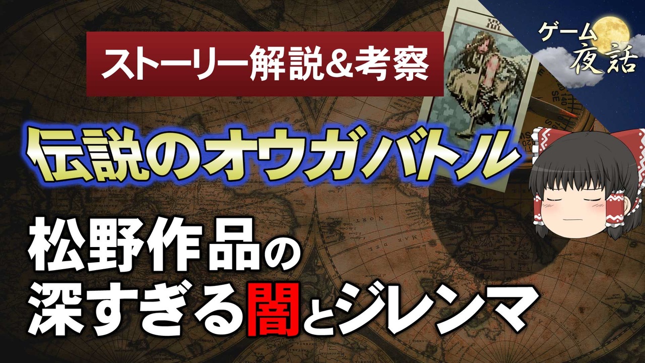 過去動画を宣伝・ギフトして下さった皆さん、ありがとうございましたm(__)m<br>毎回ひとつのゲームを取り上げ、3つのテーマから解説します。<br>【前編】は毎月1日・15日更新、【後編】は制作状況に応じて更新致します。<br><br><strong>原則、「前編」「後編」合わせて毎回約30分を予定しています。<br><br>▼第119回「伝説のオウガバトル」</strong><br>前編:<a href="https://www.nicovideo.jp/watch/sm40321333" class="watch">sm40321333</a><br>中編:<a href="https://www.nicovideo.jp/watch/sm40374088" class="watch">sm40374088</a><br><br>■youtubeはこちら <a href="https://youtu.be/8mMnq0Tygzs" target="_blank" rel="noopener nofollow">https://youtu.be/8mMnq0Tygzs</a><br>■ゲーム夜話ツイッター <a href="https://twitter.com/gameyawa" target="_blank" rel="noopener nofollow">https://twitter.com/gameyawa</a><br><br>■第117回「MOTHER3」<br>前編:<a href="https://www.nicovideo.jp/watch/sm40180551" class="watch">sm40180551</a> 中編:<a href="https://www.nicovideo.jp/watch/sm40236518" class="watch">sm40236518</a> 後編:<a href="https://www.nicovideo.jp/watch/sm40244417" class="watch">sm40244417</a><br><br>■ゲーム夜話マイリスト <a href="https://www.nicovideo.jp/mylist/56973971" target="_blank" rel="noopener">mylist/56973971</a><br><br><span style="color: #000000; font-size: 13px;">■ゲームジャンル別マイリスト</span><br>・RPG <a href="https://www.nicovideo.jp/mylist/69852172" target="_blank" rel="noopener">mylist/69852172</a><br>・アクション <a href="https://www.nicovideo.jp/mylist/69852179" target="_blank" rel="noopener">mylist/69852179</a><br>・アクションRPG <a href="https://www.nicovideo.jp/mylist/69852177" target="_blank" rel="noopener">mylist/69852177</a><br>・アドベンチャー <a href="https://www.nicovideo.jp/mylist/69852182" target="_blank" rel="noopener">mylist/69852182</a><br>・アクションアドベンチャー <a href="https://www.nicovideo.jp/mylist/69852188" target="_blank" rel="noopener">mylist/69852188</a><br>・シミュレーション <a href="https://www.nicovideo.jp/mylist/69852189" target="_blank" rel="noopener">mylist/69852189</a><br>・ホラー <a href="https://www.nicovideo.jp/mylist/69852194" target="_blank" rel="noopener">mylist/69852194</a><br>・サウンドノベル <a href="https://www.nicovideo.jp/mylist/69852197" target="_blank" rel="noopener">mylist/69852197</a>