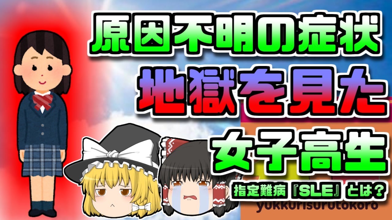 高知県高知市の高校に通う女性「Aさん」は、地元である徳島県を離れ、単身寮生活を続けていました。<br>彼女は10歳のころから、父親の影響でゴルフに励んでおり、この学校でもゴルフクラブに所属していました、<br>これまで数々のジュニア大会で優勝し、世界大会に出場するほどの腕前を持つ彼女でしたが、ある時期から謎の「咳」に悩まされ、次第にゴルフをするのが難しくなり、日常生活までもに支障をきたすほど、止まらない咳に苦しんでいました。<br>病院で検査をするも、喘息という診断ばかりで、原因は不明。<br>その後高校を卒業し、プロとして活動を始めたころ、<br>スポンサーとして彼女についていた企業から、ある病院を紹介されました。<br>その病院では、彼女の血液をアメリカの医療機関に送り、さらに詳しく検査をしてもらえるということだったので、Aさんは藁にもすがる思いでこの提案を受けれ、血液を送りました。<br>しばらくすると検査結果が戻ってきて、あの謎の症状の原因が判明。<br>それは、「遅延型食物アレルギー」という、非常に珍しいアレルギーの一種でした。<br>しかし、それはあくまでも要因の一つに過ぎず、彼女を苦しめた根本的な原因は、別の「難病」に指定されている、女性ばかりがかかる珍しい病気でした。<br><br><a href="#" class="seekTime" data-seekTime="00:00" onclick="seekNicoPlayer('#00:00'); return false;">#00:00</a> 冒頭挨拶<br><a href="#" class="seekTime" data-seekTime="00:30" onclick="seekNicoPlayer('#00:30'); return false;">#00:30</a> 視聴上の注意<br><a href="#" class="seekTime" data-seekTime="1:06" onclick="seekNicoPlayer('#1:06'); return false;">#1:06</a> 現地の説明<br><a href="#" class="seekTime" data-seekTime="2:26" onclick="seekNicoPlayer('#2:26'); return false;">#2:26</a> 女子高生「Aさん」<br><a href="#" class="seekTime" data-seekTime="3:15" onclick="seekNicoPlayer('#3:15'); return false;">#3:15</a> ゴルフ<br><a href="#" class="seekTime" data-seekTime="3:54" onclick="seekNicoPlayer('#3:54'); return false;">#3:54</a> 謎の咳<br><a href="#" class="seekTime" data-seekTime="4:39" onclick="seekNicoPlayer('#4:39'); return false;">#4:39</a> 喘息と診断 だが…<br><a href="#" class="seekTime" data-seekTime="5:06" onclick="seekNicoPlayer('#5:06'); return false;">#5:06</a> 地獄の日々<br><a href="#" class="seekTime" data-seekTime="6:37" onclick="seekNicoPlayer('#6:37'); return false;">#6:37</a> それでもプロへ<br><a href="#" class="seekTime" data-seekTime="7:42" onclick="seekNicoPlayer('#7:42'); return false;">#7:42</a> 原因判明<br><a href="#" class="seekTime" data-seekTime="8:39" onclick="seekNicoPlayer('#8:39'); return false;">#8:39</a> 非常に珍しい症例<br><a href="#" class="seekTime" data-seekTime="9:57" onclick="seekNicoPlayer('#9:57'); return false;">#9:57</a> ほとんどの食べ物が<br><a href="#" class="seekTime" data-seekTime="11:36" onclick="seekNicoPlayer('#11:36'); return false;">#11:36</a> 落ち着いた症状<br><a href="#" class="seekTime" data-seekTime="11:53" onclick="seekNicoPlayer('#11:53'); return false;">#11:53</a> 少しだけなら...<br><a href="#" class="seekTime" data-seekTime="14:12" onclick="seekNicoPlayer('#14:12'); return false;">#14:12</a> 加筆部分開始<br><a href="#" class="seekTime" data-seekTime="14:41" onclick="seekNicoPlayer('#14:41'); return false;">#14:41</a> 「膠原病」<br><a href="#" class="seekTime" data-seekTime="17:52" onclick="seekNicoPlayer('#17:52'); return false;">#17:52</a> 更なる症状<br><a href="#" class="seekTime" data-seekTime="18:48" onclick="seekNicoPlayer('#18:48'); return false;">#18:48</a> 「光過敏症」<br><a href="#" class="seekTime" data-seekTime="19:47" onclick="seekNicoPlayer('#19:47'); return false;">#19:47</a> 『全身性エリテマトーデス』<br><a href="#" class="seekTime" data-seekTime="22:02" onclick="seekNicoPlayer('#22:02'); return false;">#22:02</a> 夫と家族協力<br><a href="#" class="seekTime" data-seekTime="23:53" onclick="seekNicoPlayer('#23:53'); return false;">#23:53</a> うまく付き合っていく<br><a href="#" class="seekTime" data-seekTime="25:07" onclick="seekNicoPlayer('#25:07'); return false;">#25:07</a> 私たちも理解しよう<br><br>引用:出展:参考資料<br>Wikipedia<br>ishort.ink/V63h<br>高知新聞Plus<br>ishort.ink/n3sx<br>B-Rain Clinic<br>ishort.ink/cZPZ<br>宮崎日日新聞<br>ishort.ink/6hn2<br>時事通信<br>ishort.ink/byVB<br>SLE.JP<br>ishort.ink/27We<br>日本リウマチ学会<br>ishort.ink/NRzn<br>難病情報センター<br>ishort.ink/RFnF<br />※この動画は過去の事件を知り、現在でも同じことが発生する危険性を再認識、関与しないように促すための動画であり、視聴者を扇動、動揺を誘うためのコンテンツではありません。<br><br>ご要望にお応えして、メンバーシップの開設を行いました。<br>下記URLからも登録可能ですので、ご興味がある方は是非ご参加ください。<br><a href="https://www.youtube.com/channel/UCcT5a1J7XJW7CLYI2RKl4pw/join" target="_blank" rel="noopener nofollow">https://www.youtube.com/channel/UCcT5a1J7XJW7CLYI2RKl4pw/join</a><br><br><br>Twitter<br>→<a href="https://twitter.com/yukkurisurutoko" target="_blank" rel="noopener nofollow">https://twitter.com/yukkurisurutoko</a><br><br>取り急ぎ、簡易的にですがマイリストを作りました。<br>【ゆっくり解説】事故・事件関係紹介リスト <br><a href="https://www.nicovideo.jp/mylist/71034319" target="_blank" rel="noopener nofollow">https://www.nicovideo.jp/mylist/71034319</a><br>【ゆっくり解説】放射線系事故<br><a href="https://