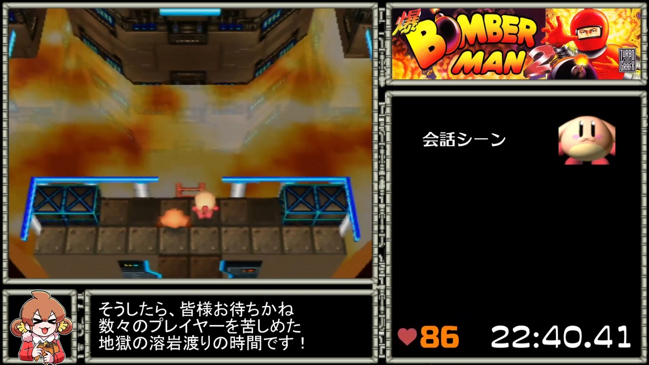 世界で初めて30分で爆ボン2をクリアできる男になったので初投稿です。<br>30分切りを達成した瞬間→<a href="https://twitter.com/smb2_aiai/status/1492704967592845312" target="_blank" rel="noopener nofollow">https://twitter.com/smb2_aiai/status/1492704967592845312</a><br><br>part1:<a href="https://www.nicovideo.jp/watch/sm40256500" class="watch">sm40256500</a><br>part2:ここ<br><br>環境:nintendo64、SUPER64、HD60S、OBS<br>過去制作した動画はこちら:<a href="https://www.nicovideo.jp/mylist/64290995" target="_blank" rel="noopener">mylist/64290995</a><br><br>ニコ生 :co3499835<br>twitch :<a href="https://www.twitch.tv/eip25" target="_blank" rel="noopener nofollow">https://www.twitch.tv/eip25</a><br>Twitter:<a href="https://twitter.com/smb2_aiai" target="_blank" rel="noopener nofollow">https://twitter.com/smb2_aiai</a><br>SRC :<a href="https://www.speedrun.com/user/EiP25" target="_blank" rel="noopener nofollow">https://www.speedrun.com/user/EiP25</a><br>HP :<a href="http://eip25.sakura.ne.jp" target="_blank" rel="noopener nofollow">http://eip25.sakura.ne.jp</a>(ギャラリーpass:aiai)<br><br>左下のアイコン ボンぼん兄貴:<a href="https://twitter.com/kenzi2231" target="_blank" rel="noopener nofollow">https://twitter.com/kenzi2231</a><br>スペシャルサンクス 三条兄貴:<a href="https://www.nicovideo.jp/user/44491949/mylist" target="_blank" rel="noopener nofollow">https://www.nicovideo.jp/user/44491949/mylist</a><br>