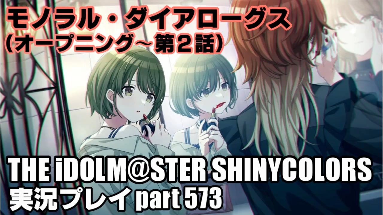 今回はシナリオイベント【モノラル・ダイアローグス】をオープニングから第2話までを鑑賞します。<br><br>正直、今まで見たコミュの中で1番ダメージを負ったかもしれません。<br><br> 前回 → <a href="https://www.nicovideo.jp/watch/sm40404078" class="watch">sm40404078</a><br> 次回 → <a href="https://www.nicovideo.jp/watch/sm40417532" class="watch">sm40417532</a><br> 限定版 → <a href="https://www.nicovideo.jp/watch/sm40245755" class="watch">sm40245755</a><br><br> コミュニティ → co3766379 <br> シャニマス マイリスト → ① <a href="https://www.nicovideo.jp/mylist/61820967" target="_blank" rel="noopener">mylist/61820967</a><br> ② <a href="https://www.nicovideo.jp/mylist/71459810" target="_blank" rel="noopener">mylist/71459810</a><br><br>【動画説明】<br>・THE IDOLM@STER SHINYCOLORSを実況しながら遊んでみました。<br>・このゲーム実況は「アイドルマスター シャイニーカラーズ ゲーム実況ポリシー」<br> <a href="https://shinycolors.idolmaster.jp/game_commentary_policy/" target="_blank" rel="noopener nofollow">https://shinycolors.idolmaster.jp/game_commentary_policy/</a><br> に基づき制作・配信されています。<br>・「バンダイナムコエンターテインメント ゲーム実況ポリシー」が公開されました。<br> <a href="https://www.bandainamcoent.co.jp/info/videopolicy/" target="_blank" rel="noopener nofollow">https://www.bandainamcoent.co.jp/info/videopolicy/</a><br>・本動画には<span style="color: #ff0000;"><strong>ゲームシナリオ・コミュのネタバレが含まれます</strong></span>。<br> ネタバレが嫌な方は、ご視聴はお控えください。<br>・本動画には、<span style="color: #ff0000;"><strong>雑な声真似、アテレコ、茶番、奇声、妄想等が含まれます</strong></span>。<br> 苦手な方、許容できない方は、ご視聴をご遠慮願います。<br> また、<span style="color: #ff0000;"><strong>他者を不快にするコメントはご遠慮願います</strong></span>。<br>・誤った知識や適当な発言があるかと思いますが、やんわりとご指摘頂ければ助かります。<br>・ツイッター: <a href="https://twitter.com/midvalley_midon" target="_blank" rel="noopener nofollow">https://twitter.com/midvalley_midon</a> (更新報告など)