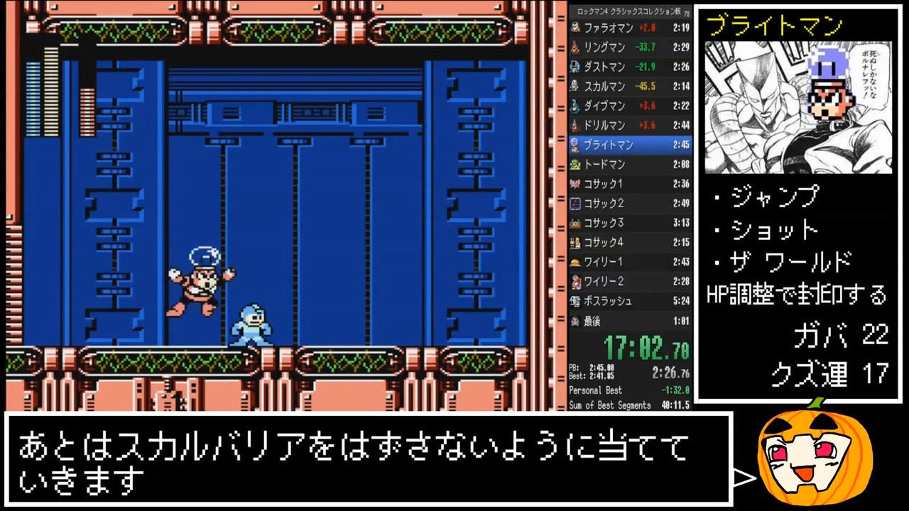 初投稿です<br>Steam版ロックマン クラシックス コレクション(Mega Man Legacy Collection)のロックマン4 any% RTAです。<br>speedrun.comで世界6位です!(2022/05/10現在)<br><br>youtube版: <a href="https://youtu.be/54nrmE69LV8" target="_blank" rel="noopener nofollow">https://youtu.be/54nrmE69LV8</a><br><br>無編集版: <a href="https://youtu.be/hWOavqEhNtk" target="_blank" rel="noopener nofollow">https://youtu.be/hWOavqEhNtk</a><br><br>Twitter:<a href="https://twitter.com/guti_o_euclid" target="_blank" rel="noopener nofollow">https://twitter.com/guti_o_euclid</a><br><br>次: <a href="https://www.nicovideo.jp/watch/sm40464707" target="_blank" rel="noopener nofollow">https://www.nicovideo.jp/watch/sm40464707</a><br><br>speedrun.com: <a href="https://www.speedrun.com/user/guti_o_euclid" target="_blank" rel="noopener nofollow">https://www.speedrun.com/user/guti_o_euclid</a><br><br>RTA part1集: <a href="https://www.nicovideo.jp/mylist/73535031" target="_blank" rel="noopener nofollow">https://www.nicovideo.jp/mylist/73535031</a>
