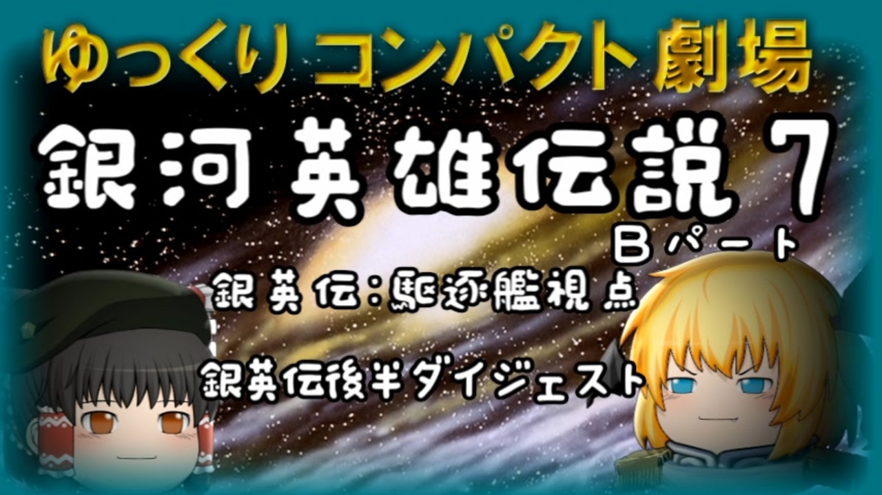 「ゆっくり文庫リスペクト」第十一弾。<br>のBパート。<br><br>先にAパートをご覧ください。<br>こちらのパートは解説と制作話がメイン。<br>といってもちゃんとお饅頭劇場もあります。<br><br>ふう…やりきる事ができて良かった。<br>予は満足じゃ。<br><br>・解説1 <a href="#" class="seekTime" data-seekTime="0:05" onclick="seekNicoPlayer('#0:05'); return false;">#0:05</a><br>・銀英伝 駆逐艦視点 <a href="#" class="seekTime" data-seekTime="2:02" onclick="seekNicoPlayer('#2:02'); return false;">#2:02</a><br>・解説2 <a href="#" class="seekTime" data-seekTime="6:29" onclick="seekNicoPlayer('#6:29'); return false;">#6:29</a><br>・銀英伝後半ダイジェスト <a href="#" class="seekTime" data-seekTime="9:23" onclick="seekNicoPlayer('#9:23'); return false;">#9:23</a><br>・解説3 <a href="#" class="seekTime" data-seekTime="18:01" onclick="seekNicoPlayer('#18:01'); return false;">#18:01</a><br><br>ゆっくりコンパクト劇場 銀河英雄伝説 ファンアート<br><a href="https://seiga.nicovideo.jp/seiga/im10934361" target="_blank" rel="noopener">im10934361</a><br><br>ゆっくり文庫様<br><a href="https://www.nicovideo.jp/mylist/71854227" target="_blank" rel="noopener">mylist/71854227</a><br><br>東方銀河英雄伝説 第1話「銀英祭概略」<br><a href="https://www.nicovideo.jp/watch/sm20467316" class="watch">sm20467316</a><br><br>前Aパート⇒<a href="https://www.nicovideo.jp/watch/sm40417169" class="watch">sm40417169</a><br><br>次⇒<a href="https://www.nicovideo.jp/watch/sm40871679" class="watch">sm40871679</a><br><br><br />うp主のクリ奨扱いの番組(ギフト)<br>●動画投稿講座(海兵隊式)<br><a href="https://www.nicovideo.jp/watch/sm41183459" class="watch">sm41183459</a><br><br>●ほしいものリスト(同じものでも全然嬉しい)<br><a href="https://www.amazon.co.jp/hz/wishlist/ls/20X2QKDPSW451?ref_=wl_share" target="_blank" rel="noopener nofollow">https://www.amazon.co.jp/hz/wishlist/ls/20X2QKDPSW451?ref_=wl_share</a><br>●匿名で送る方法<br><a href="https://appllio.com/amazon-wish-list" target="_blank" rel="noopener nofollow">https://appllio.com/amazon-wish-list</a><br><br>うp主の動画<br>ゆっくりのワイドショー⇒<a href="https://www.nicovideo.jp/mylist/45200880" target="_blank" rel="noopener">mylist/45200880</a><br>ゆっくりコンパクト劇場⇒<a href="https://www.nicovideo.jp/mylist/67330756" target="_blank" rel="noopener">mylist/67330756</a><br>ゆっくりロードショー⇒<a href="https://www.nicovideo.jp/mylist/51596849" target="_blank" rel="noopener">mylist/51596849</a><br>おもちゃ箱⇒<a href="https://www.nicovideo.jp/series/265908" target="_blank" rel="noopener">series/265908</a><br>ようつべセブンのチャンネル<br><a href="http://www.youtube.com/c/sevenyoutube" target="_blank" rel="noopener nofollow">http://www.youtube.com/c/sevenyoutube</a><br><br>ニコニコ大百科 ゆっくりのワイドショー<br><a href="https://dic.nicovideo.jp/id/5337230" target="_blank" rel="noopener nofollow">https://dic.nicovideo.jp/id/5337230</a><br><br>ニコニコ大百科 ゆっくり文庫リスペクト<br><a href="https://dic.nicovideo.jp/id/5701480" target="_blank" rel="noopener nofollow">https://dic.nicovideo.jp/id/5701480</a>