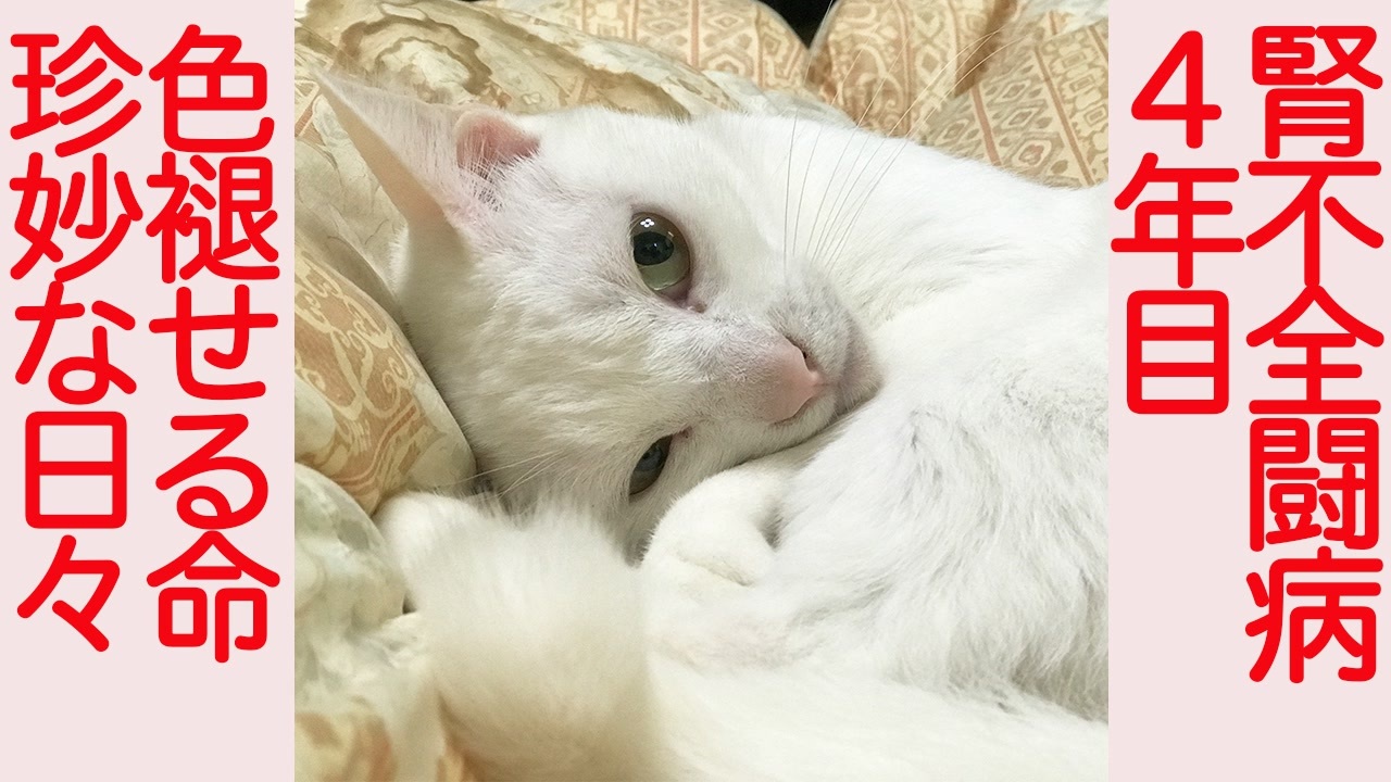 2014年春の終わりに保護、2018年春に右の腎臓の変形を発見されて精密検査で腎不全と診断された我が家の主猫・麿白先生。<br>それ以降、食餌療法と投薬とこまめな検診で小康状態を保ちつつ、血液検査ではよくなったり悪くなったりを繰り返すものの、目立った腎不全の症状は見られず。<br><br>そして2022年4月、様々なことが有りつつ、4年が経過しました。<br><br>簡単な登場猫紹介2022 <a href="http://blog.livedoor.jp/nekokamasu/archives/58867538.html" target="_blank" rel="noopener nofollow">http://blog.livedoor.jp/nekokamasu/archives/58867538.html</a><br>よくあるご質問 <a href="http://blog.livedoor.jp/nekokamasu/archives/57126148.html" target="_blank" rel="noopener nofollow">http://blog.livedoor.jp/nekokamasu/archives/57126148.html</a><br>ブログ <a href="http://blog.livedoor.jp/nekokamasu/" target="_blank" rel="noopener nofollow">http://blog.livedoor.jp/nekokamasu/</a>
