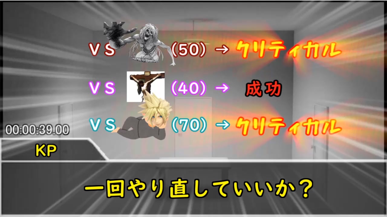 正直ノグソが一人でも引き連れて帰ったらやり直してた<br><br><strong>むしろこんなの許可するのがおかしいんだけどな</strong><br />お借りした素材元様<br><br>米津玄師様<br>Scatman様<br>OtoLogic様<br>On-Jin~音人~様<br>魔王魂様<br>効果音ラボ様<br>煉獄庭園様<br>ニコニコモンズの皆様