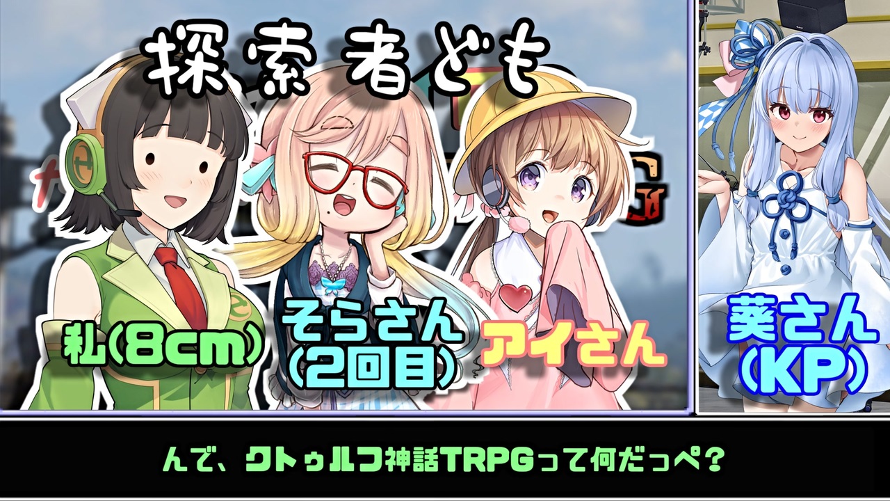 祝☆熟女卓回避(当社比)。<br><br>CoCTRPG第三弾でごぜーやす<br><strong>シナリオ:「存続を辿る村」by 相川うまみ @aikawa_tkmn</strong><br><a href="https://seesaawiki.jp/trpgyarouzu/d/%C2%B8%C2%B3%a4%f2%C3%A9%a4%eb%C2%BC" target="_blank" rel="noopener nofollow">https://seesaawiki.jp/trpgyarouzu/d/%C2%B8%C2%B3%a4%f2%C3%A9%a4%eb%C2%BC</a><br>※第7版ルールに沿う(都度解説)<br><br>※御武 凛のステータス表示がみちゅこ(56)からコピペしたままの数値になってしまっています。<br>コメントでのご指摘助かりました。 アヒエェ…(´ω`;)<br>次:<a href="https://www.nicovideo.jp/watch/sm41900615" class="watch">sm41900615</a><br>当マイリスト:<a href="https://www.nicovideo.jp/mylist/73140232" target="_blank" rel="noopener">mylist/73140232</a><br>CoCTRPG第一弾シリーズ「真っ赤なパイ」:<a href="https://www.nicovideo.jp/series/23148" target="_blank" rel="noopener">series/23148</a><br>part1:<a href="https://www.nicovideo.jp/watch/sm34831897" class="watch">sm34831897</a><br><br>CoCTRPG第二弾シリーズ「古き木々のただなかで」:<a href="https://www.nicovideo.jp/series/103216" target="_blank" rel="noopener">series/103216</a><br>part1:<a href="https://www.nicovideo.jp/watch/sm36466239" class="watch">sm36466239</a><br><br>作ったもの:<a href="https://www.nicovideo.jp/mylist/59257049" target="_blank" rel="noopener">mylist/59257049</a><br>twitter(連絡・進捗確認などはこちらから):<a href="https://twitter.com/8cm_80mm" target="_blank" rel="noopener nofollow">https://twitter.com/8cm_80mm</a><br>使用音源:魔王魂 DOVA-SYNDROME<br><br>////////////////////////////////////////////////////////////////////////////////////////////////////////////////////////////////////////<br>【 宣伝 】<br>ゲームやTRPGセッションの配信者8人グループ「ツクモノセッション」に参加しています<br>メンバーのフォローや応援 よろしくお願いします!<br>ツクモノセッション(準備中):<a href="https://x.com/v99_no_session" target="_blank" rel="noopener nofollow">https://x.com/v99_no_session</a><br><br><メンバー><br>【琴葉葵の中身】相川うまみ @Vtuber準備中:<a href="https://x.com/aikawa_tkmn" target="_blank" rel="noopener nofollow">https://x.com/aikawa_tkmn</a><br>【桜乃そらの中身】蓮寺デンシ @Vtuber:<a href="https://x.com/densi_tkmn" target="_blank" rel="noopener nofollow">https://x.com/densi_tkmn</a><br>【月読アイの中身】鷹左右・Q・The衛門<br> 葛戸カフカ @Kudo Kafka:<a href="https://x.com/KudoKfK_tkmn" target="_blank" rel="noopener nofollow">https://x.com/KudoKfK_tkmn</a><br>その他 準備中…<br>////////////////////////////////////////////////////////////////////////////////////////////////////////////////////////////////////////