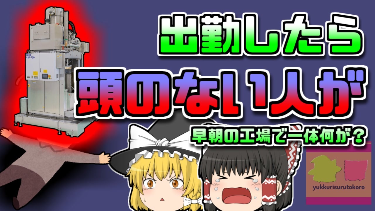 #ゆっくりするところ #クリーニング #労災<br>今回紹介するのは、以前からリクエストがありました「乾燥機」による事例です。<br>高知県高知市のとあるクリーニング工場。<br>ここはあまり大きな工場ではありませんでしたが、介護施設やホテルといった企業から、ベッドシーツなどのクリーニングを請け負っており、ここで専務を務めていた男性「Aさん」は、朝早くから出勤していました。<br>しかし、工場内に到着すると、すでに電源が入れられ、先に作業を行っている社員がいるようでした。<br>Aさんが工場内を回っていると、プレス乾燥機の横が真っ赤に染まり、その中には首のない男性が…<br><br>早朝のクリーニング工場で、彼はどうしてこのような状態になってしまったのでしょうか?<br><br><a href="#" class="seekTime" data-seekTime="00:00" onclick="seekNicoPlayer('#00:00'); return false;">#00:00</a> 冒頭挨拶<br><a href="#" class="seekTime" data-seekTime="00:30" onclick="seekNicoPlayer('#00:30'); return false;">#00:30</a> 視聴上の注意<br><a href="#" class="seekTime" data-seekTime="1:18" onclick="seekNicoPlayer('#1:18'); return false;">#1:18</a> 現地の説明<br><a href="#" class="seekTime" data-seekTime="2:07" onclick="seekNicoPlayer('#2:07'); return false;">#2:07</a> クリーニング工場<br><a href="#" class="seekTime" data-seekTime="2:23" onclick="seekNicoPlayer('#2:23'); return false;">#2:23</a> 早朝出勤する専務<br><a href="#" class="seekTime" data-seekTime="3:10" onclick="seekNicoPlayer('#3:10'); return false;">#3:10</a> 脱水機の近くには…<br><a href="#" class="seekTime" data-seekTime="3:47" onclick="seekNicoPlayer('#3:47'); return false;">#3:47</a> 調査開始<br><a href="#" class="seekTime" data-seekTime="4:03" onclick="seekNicoPlayer('#4:03'); return false;">#4:03</a> 頭部がなかったのはBさん<br><a href="#" class="seekTime" data-seekTime="4:45" onclick="seekNicoPlayer('#4:45'); return false;">#4:45</a> 何故脱水機に?<br><a href="#" class="seekTime" data-seekTime="7:18" onclick="seekNicoPlayer('#7:18'); return false;">#7:18</a> 本来ならば<br><a href="#" class="seekTime" data-seekTime="9:36" onclick="seekNicoPlayer('#9:36'); return false;">#9:36</a> その後の対策<br><br><br>引用:出展:参考資料<br>高知県<br>ishort.ink/WB65<br>高知市<br>ishort.ink/kf2b<br>Rittal The System.<br>ishort.ink/HY4N<br>厚生労働省<br>ishort.ink/u43i<br>高知県クリーニング生活衛生同業組合<br>ishort.ink/M6YM<br><br><br />※この動画は過去の事件を知り、現在でも同じことが発生する危険性を再認識、関与しないように促すための動画であり、視聴者を扇動、動揺を誘うためのコンテンツではありません。<br><br>ご要望にお応えして、メンバーシップの開設を行いました。<br>下記URLからも登録可能ですので、ご興味がある方は是非ご参加ください。<br><a href="https://www.youtube.com/channel/UCcT5a1J7XJW7CLYI2RKl4pw/join" target="_blank" rel="noopener nofollow">https://www.youtube.com/channel/UCcT5a1J7XJW7CLYI2RKl4pw/join</a><br><br><br>Twitter<br>→<a href="https://twitter.com/yukkurisurutoko" target="_blank" rel="noopener nofollow">https://twitter.com/yukkurisurutoko</a><br><br>取り急ぎ、簡易的にですがマイリストを作りました。<br>【ゆっくり解説】事故・事件関係紹介リスト <br><a href="https://www.nicovideo.jp/mylist/71034319" target="_blank" rel="noopener nofollow">https://www.nicovideo.jp/mylist/71034319</a><br>【ゆっくり解説】放射線系事故<br><a href="https://www.nicovideo.jp/mylist/71034368" target="_blank" rel="noopener nofollow">https://www.nicovideo.jp/mylist/71034368</a><br>【ゆっくり解説】鉄道系事故・事件関連<br><a href="https://www.nicovideo.jp/mylist/71034379" target="_blank" rel="noopener nofollow">https://www.nicovideo.jp/mylist/71034379</a>