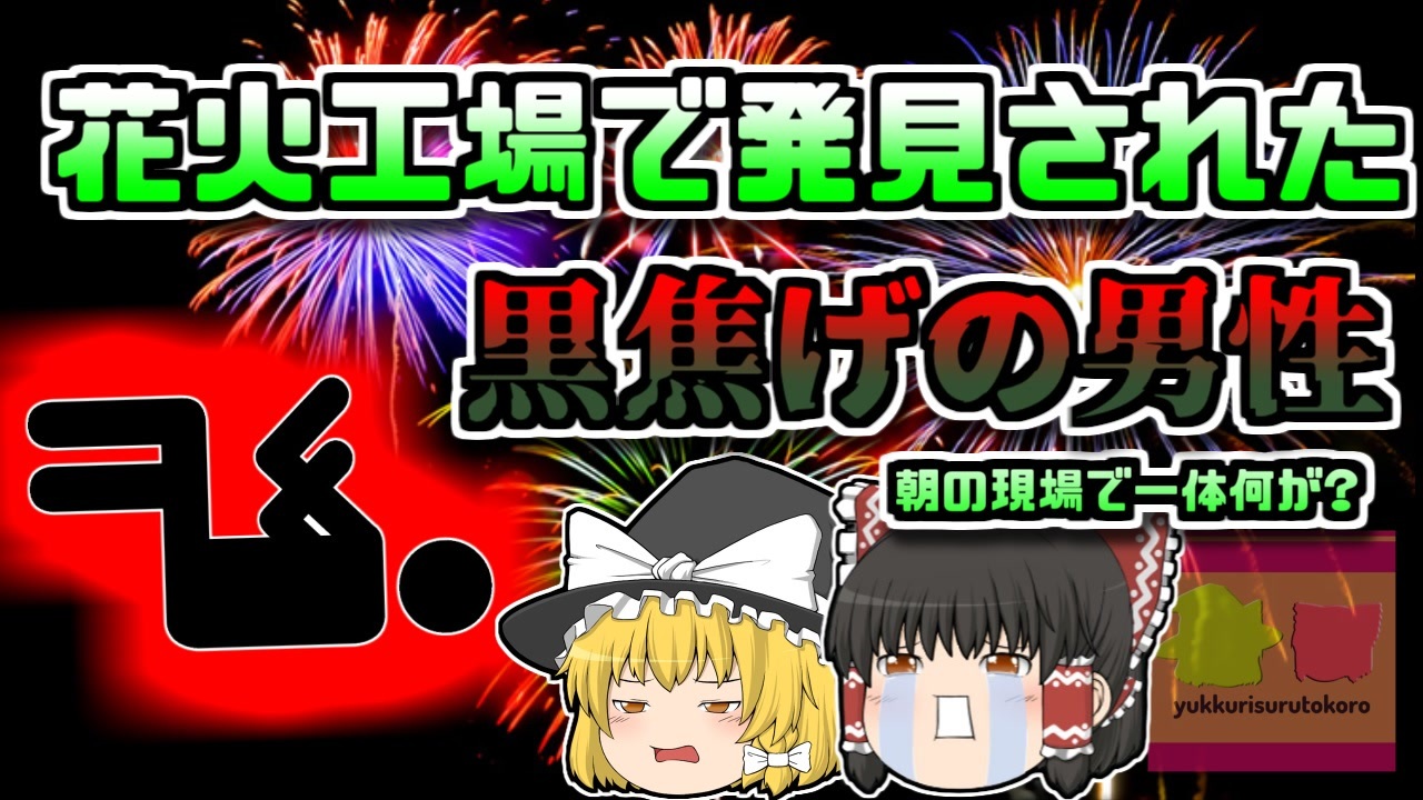 #ゆっくりするところ #静岡 #花火<br>今回紹介するのは、以前からリクエストがありました「花火工場爆発事故」です。<br>2018年6月午前9時ごろ。静岡県浜松市内のとある花火工場が大爆発し、火災が発生しました。<br>巨大な黒煙が立ち上り、「ドン!ドン!」と何度も繰り返し爆発が起こり、近隣の住宅が揺れるほどの轟音が鳴り響きました。<br>すぐさま警察や消防が駆け付け、消火・救助活動を開始。<br>作業現場から、一名の男性が救出されましたが、全身に重度の熱傷を負っており、病院に搬送後、帰らぬ人となってしまいました。<br><br>この火災は約1時間45分後に鎮火し、現場からもう一人、全身が黒焦げになった状態の男性が発見されました。<br><br>この当日、敷地内にいた作業員は16名でしたが、火元とみられる作業棟には、亡くなった二名だけが入っていたということでした。<br><br>朝の花火工場で、一体何故こんなことが起きてしまったのでしょうか?<br><br><a href="#" class="seekTime" data-seekTime="00:00" onclick="seekNicoPlayer('#00:00'); return false;">#00:00</a> 冒頭挨拶<br><a href="#" class="seekTime" data-seekTime="00:23" onclick="seekNicoPlayer('#00:23'); return false;">#00:23</a> 視聴上の注意<br><a href="#" class="seekTime" data-seekTime="1:04" onclick="seekNicoPlayer('#1:04'); return false;">#1:04</a> 現地の説明<br><a href="#" class="seekTime" data-seekTime="2:19" onclick="seekNicoPlayer('#2:19'); return false;">#2:19</a> 花火工場<br><a href="#" class="seekTime" data-seekTime="2:50" onclick="seekNicoPlayer('#2:50'); return false;">#2:50</a> 打ち上げ花火の製造工程<br><a href="#" class="seekTime" data-seekTime="3:34" onclick="seekNicoPlayer('#3:34'); return false;">#3:34</a> 作業棟<br><a href="#" class="seekTime" data-seekTime="4:10" onclick="seekNicoPlayer('#4:10'); return false;">#4:10</a> 突然の大爆発<br><a href="#" class="seekTime" data-seekTime="5:25" onclick="seekNicoPlayer('#5:25'); return false;">#5:25</a> 被害状況<br><a href="#" class="seekTime" data-seekTime="6:28" onclick="seekNicoPlayer('#6:28'); return false;">#6:28</a> 原因の調査<br><a href="#" class="seekTime" data-seekTime="6:55" onclick="seekNicoPlayer('#6:55'); return false;">#6:55</a> 杜撰な体制<br><a href="#" class="seekTime" data-seekTime="9:34" onclick="seekNicoPlayer('#9:34'); return false;">#9:34</a> 火花の可能性大<br><a href="#" class="seekTime" data-seekTime="11:00" onclick="seekNicoPlayer('#11:00'); return false;">#11:00</a> 本来ならば…<br><a href="#" class="seekTime" data-seekTime="11:57" onclick="seekNicoPlayer('#11:57'); return false;">#11:57</a> あり得ない任せ方<br><a href="#" class="seekTime" data-seekTime="12:40" onclick="seekNicoPlayer('#12:40'); return false;">#12:40</a> その後<br><br>引用:出展:参考資料<br>産業保安 (METI/経済産業省)<br>ishort.ink/xJPA<br>公益社団法人 日本煙火協会<br>ishort.ink/2mFx<br>浜松市<br>ishort.ink/KRKH<br>Wikipedia<br>ishort.ink/hpph<br>㈱磯谷煙火店<br>ishort.ink/6K4u<br>㈱佐藤煙火<br>ishort.ink/oSzd<br>ココハマ<br>ishort.ink/e6wD<br><br><br><br><br><br />※この動画は過去の事件を知り、現在でも同じことが発生する危険性を再認識、関与しないように促すための動画であり、視聴者を扇動、動揺を誘うためのコンテンツではありません。<br><br>ご要望にお応えして、メンバーシップの開設を行いました。<br>下記URLからも登録可能ですので、ご興味がある方は是非ご参加ください。<br><a href="https://www.youtube.com/channel/UCcT5a1J7XJW7CLYI2RKl4pw/join" target="_blank" rel="noopener nofollow">https://www.youtube.com/channel/UCcT5a1J7XJW7CLYI2RKl4pw/join</a><br><br><br>Twitter<br>→<a href="https://twitter.com/yukkurisurutoko" target="_blank" rel="noopener nofollow">https://twitter.com/yukkurisurutoko</a><br><br>取り急ぎ、簡易的にですがマイリストを作りました。<br>【ゆっくり解説】事故・事件関係紹介リスト <br><a href="https://www.nicovideo.jp/mylist/71034319" target="_blank" rel="noopener nofollow">https://www.nicovideo.jp/mylist/71034319</a><br>【ゆっくり解説】放射線系事故<br><a href="https://www.nicovideo.jp/mylist/71034368" target="_blank" rel="noopener nofollow">https://www.nicovideo.jp/mylist/71034368</a><br>【ゆっくり解説】鉄道系事故・事件関連<br><a href="https://www.nicovideo.jp/mylist/71034379" target="_blank" rel="noopener nofollow">https://www.nicovideo.jp/mylist/71034379</a>