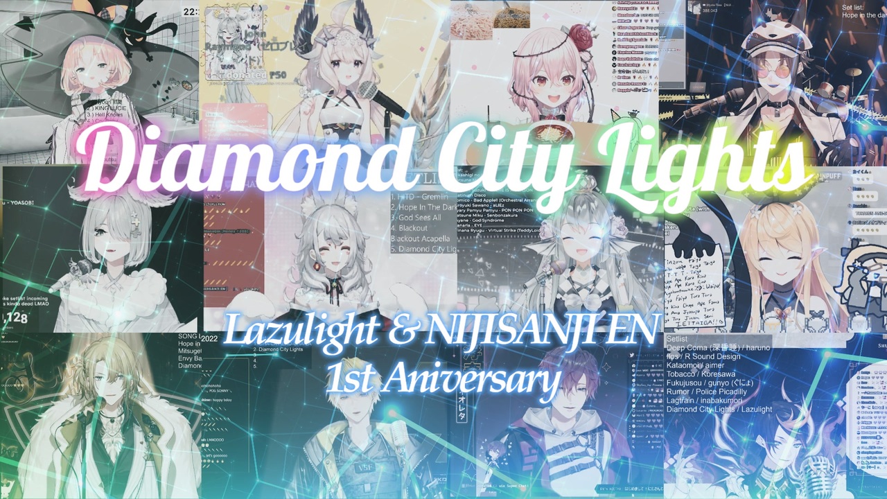 <span style="font-size: 24px;">Lazulight & NIJISANJI EN 一周年おめでとうございます!!!</span><br>Happy 1st Anniversary LazuLight & NIJISANJI EN!<br><br><br><br>原曲<br>LazuLight - Diamond City Lights (Official Music Video) | NIJISANJI EN<br><a href="https://www.youtube.com/watch?v=ZnP0cKNPE04" target="_blank" rel="noopener nofollow">https://www.youtube.com/watch?v=ZnP0cKNPE04</a><br><br>みんなに愛されるデビュー曲のDiamond City Lightsですが<br>たくさんの方が歌っていたのでひたすら集めてつなげてみました。<br>弾き語りだったりなど編集の都合で載せられなかったものもたくさんあるので<br>ぜひ元動画を見てみてください。<br><br>再生リスト <a href="https://www.youtube.com/playlist?list=PLL9ps9hx0BNCCecJsI0kbwi96FLOamIRc" target="_blank" rel="noopener nofollow">https://www.youtube.com/playlist?list=PLL9ps9hx0BNCCecJsI0kbwi96FLOamIRc</a><br><br>LazuLight 1st Anniversary Goods <a href="https://animebox.jp/315447/" target="_blank" rel="noopener nofollow">https://animebox.jp/315447/</a><br>日本 にじさんじオフィシャルストア <a href="https://shop.nijisanji.jp/s/niji/" target="_blank" rel="noopener nofollow">https://shop.nijisanji.jp/s/niji/</a><br>英語圏 NIJISANJI EN Official Store <a href="https://nijisanji-store.com/" target="_blank" rel="noopener nofollow">https://nijisanji-store.com/</a><br><br>Lazulight<br>Finana Ryugu - フィナーナ竜宮<br><a href="https://www.youtube.com/channel/UCu-J8uIXuLZh16gG-cT1naw" target="_blank" rel="noopener nofollow">https://www.youtube.com/channel/UCu-J8uIXuLZh16gG-cT1naw</a><br><br>Elira Pendora - エリーラペンドラ<br><a href="https://www.youtube.com/channel/UCIeSUTOTkF9Hs7q3SGcO-Ow" target="_blank" rel="noopener nofollow">https://www.youtube.com/channel/UCIeSUTOTkF9Hs7q3SGcO-Ow</a><br><br>Pomu Rainpuff - ぽむれいんぱふ<br><a href="https://www.youtube.com/channel/UCP4nMSTdwU1KqYWu3UH5DHQ" target="_blank" rel="noopener nofollow">https://www.youtube.com/channel/UCP4nMSTdwU1KqYWu3UH5DHQ</a><br><br>NIJISANJI English Official<br><a href="https://www.youtube.com/channel/UC-JSeFfovhNsEhftt1WHMvg" target="_blank" rel="noopener nofollow">https://www.youtube.com/channel/UC-JSeFfovhNsEhftt1WHMvg</a>