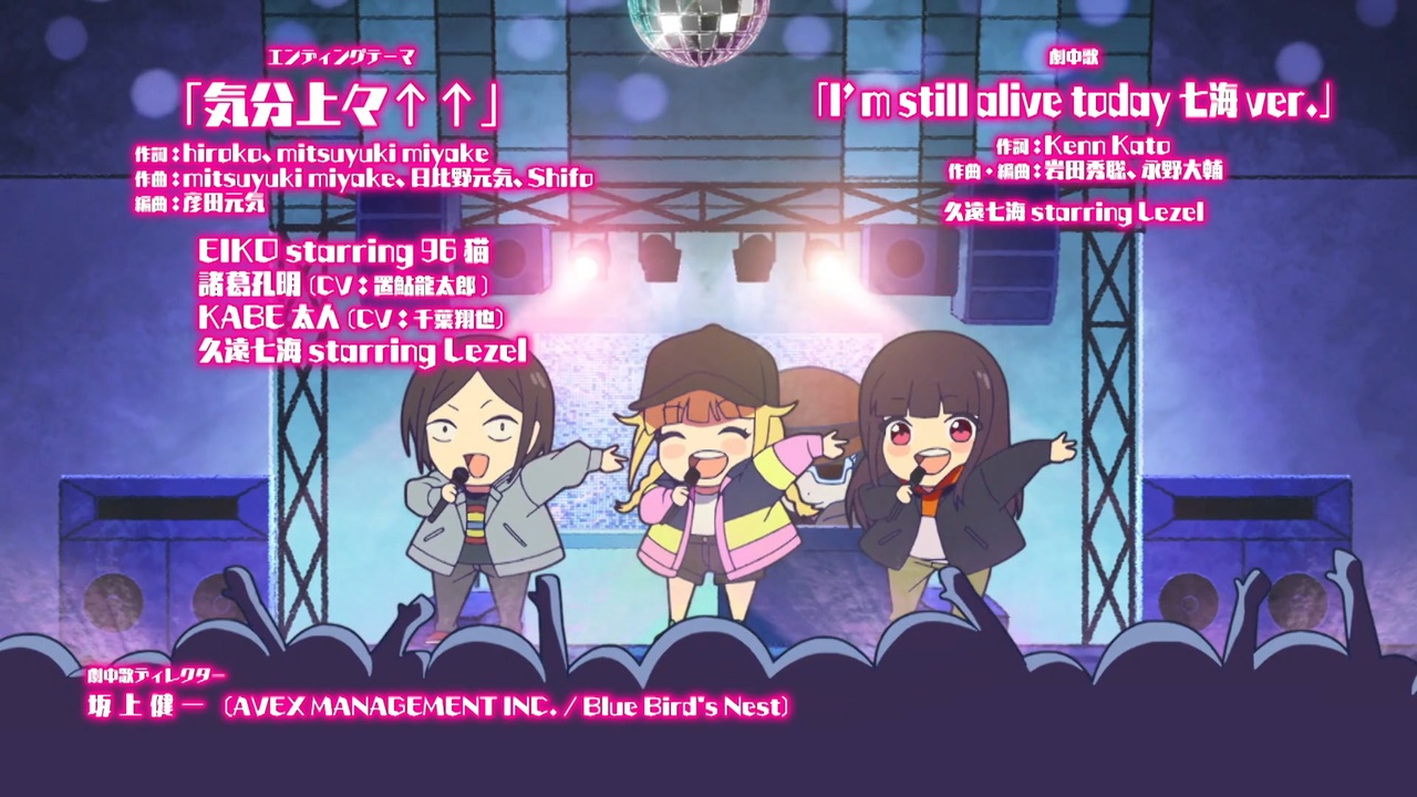 歌:EIKO starring 96猫、諸葛孔明(CV.置鮎龍太郎)、KABE太人(CV.千葉翔也)、久遠七海 starring Lezel