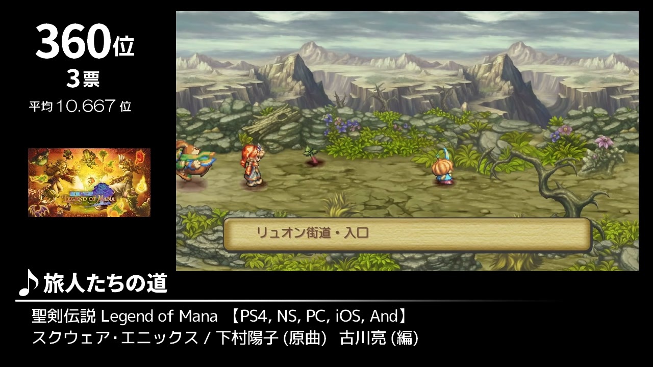 2021年の新曲ランキング Part2です。368~346位の23曲を収録。<br><br><span style="color: #00afcc; font-size: 16px;"><strong>Part2のゲーム・サントラ購入先まとめはこちら!</strong></span><br><a href="https://kara-age.blogspot.com/2022/05/ost202102.html" target="_blank" rel="noopener nofollow">https://kara-age.blogspot.com/2022/05/ost202102.html</a><br><br><br><br><a href="https://www.nicovideo.jp/watch/sm40432514" class="watch">sm40432514</a> ←前【<a href="https://www.nicovideo.jp/mylist/73142140" target="_blank" rel="noopener">mylist/73142140</a>】次→ <a href="https://www.nicovideo.jp/watch/sm40501121" class="watch">sm40501121</a><br><br><br><br><br>【忙しい人のためのショートカット】<br>①<a href="#" class="seekTime" data-seekTime="00:15" onclick="seekNicoPlayer('#00:15'); return false;">#00:15</a> ②<a href="#" class="seekTime" data-seekTime="03:34" onclick="seekNicoPlayer('#03:34'); return false;">#03:34</a> ③<a href="#" class="seekTime" data-seekTime="09:02" onclick="seekNicoPlayer('#09:02'); return false;">#09:02</a> ④<a href="#" class="seekTime" data-seekTime="11:19" onclick="seekNicoPlayer('#11:19'); return false;">#11:19</a> ⑤<a href="#" class="seekTime" data-seekTime="13:23" onclick="seekNicoPlayer('#13:23'); return false;">#13:23</a> ⑥<a href="#" class="seekTime" data-seekTime="15:50" onclick="seekNicoPlayer('#15:50'); return false;">#15:50</a> ⑦<a href="#" class="seekTime" data-seekTime="18:58" onclick="seekNicoPlayer('#18:58'); return false;">#18:58</a> ⑧<a href="#" class="seekTime" data-seekTime="21:38" onclick="seekNicoPlayer('#21:38'); return false;">#21:38</a> ⑨<a href="#" class="seekTime" data-seekTime="26:30" onclick="seekNicoPlayer('#26:30'); return false;">#26:30</a> ⑩<a href="#" class="seekTime" data-seekTime="29:11" onclick="seekNicoPlayer('#29:11'); return false;">#29:11</a> ⑪<a href="#" class="seekTime" data-seekTime="32:01" onclick="seekNicoPlayer('#32:01'); return false;">#32:01</a> ⑫<a href="#" class="seekTime" data-seekTime="34:50" onclick="seekNicoPlayer('#34:50'); return false;">#34:50</a> ⑬<a href="#" class="seekTime" data-seekTime="38:17" onclick="seekNicoPlayer('#38:17'); return false;">#38:17</a> ⑭<a href="#" class="seekTime" data-seekTime="43:01" onclick="seekNicoPlayer('#43:01'); return false;">#43:01</a> ⑮<a href="#" class="seekTime" data-seekTime="45:41" onclick="seekNicoPlayer('#45:41'); return false;">#45:41</a> ⑯<a href="#" class="seekTime" data-seekTime="47:33" onclick="seekNicoPlayer('#47:33'); return false;">#47:33</a> ⑰<a href="#" class="seekTime" data-seekTime="51:15" onclick="seekNicoPlayer('#51:15'); return false;">#51:15</a> ⑱<a href="#" class="seekTime" data-seekTime="54:17" onclick="seekNicoPlayer('#54:17'); return false;">#54:17</a> ⑲<a href="#" class="seekTime" data-seekTime="60:57" onclick="seekNicoPlayer('#60:57'); return false;">#60:57</a> ⑳<a href="#" class="seekTime" data-seekTime="66:59" onclick="seekNicoPlayer('#66:59'); return false;">#66:59</a> ㉑<a href="#" class="seekTime" data-seekTime="69:58" onclick="seekNicoPlayer('#69:58'); return false;">#69:58</a> ㉒<a href="#" class="seekTime" data-seekTime="72:19" onclick="seekNicoPlayer('#72:19'); return false;">#72:19</a> ㉓<a href="#" class="seekTime" data-seekTime="74:42" onclick="seekNicoPlayer('#74:42'); return false;">#74:42</a>