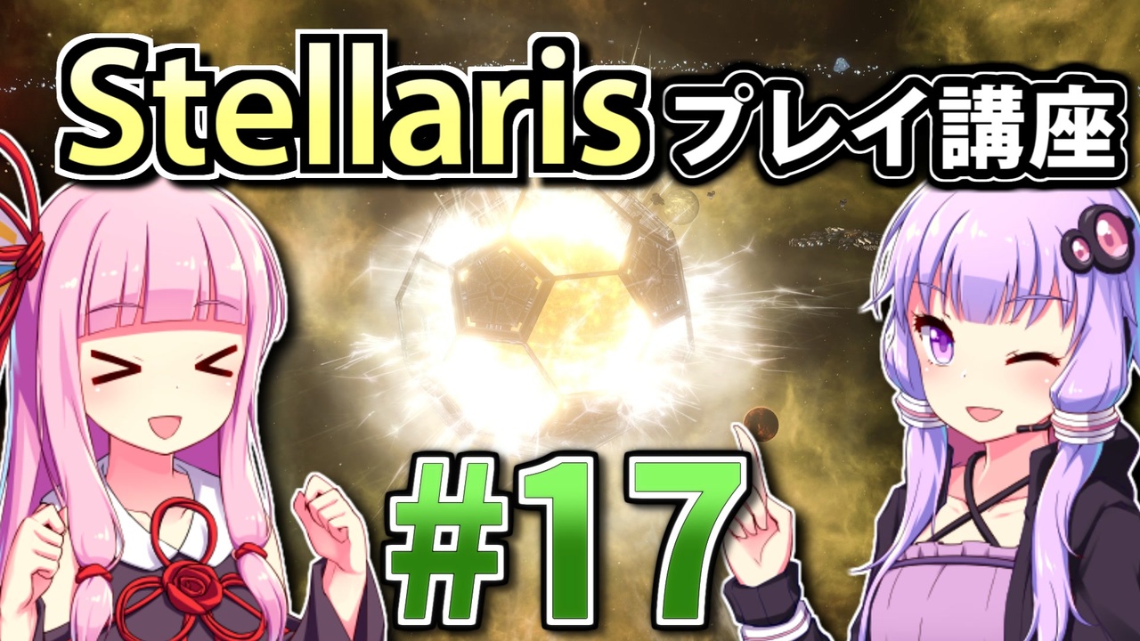 宇宙が舞台の戦略SLG、Stellaris (ステラリス) の遊び方・攻略を初心者向けに解説するプレイ動画。<br>第17回は「危機になる」とスターイーターについて。<br><br>前 : 第16話 (<a href="https://www.nicovideo.jp/watch/sm40432819" class="watch">sm40432819</a>) <-> 次 : (特別編:<a href="https://www.nicovideo.jp/watch/sm40493662" class="watch">sm40493662</a>)<br>このシリーズのリンク: <a href="https://www.nicovideo.jp/series/263583" target="_blank" rel="noopener">series/263583</a><br><br>■ プレイ環境 : Stellaris Ver 3.2.2<br>■ 使用MOD:<br> ・Stellaris 日本語化MOD : <a href="https://steamcommunity.com/sharedfiles/filedetails/?id=792636965" target="_blank" rel="noopener nofollow">https://steamcommunity.com/sharedfiles/filedetails/?id=792636965</a> (日本語で読める)<br> ・結月ゆかりボイスMOD : <a href="https://steamcommunity.com/sharedfiles/filedetails/?id=2521697832" target="_blank" rel="noopener nofollow">https://steamcommunity.com/sharedfiles/filedetails/?id=2521697832</a> (耳が幸せになる) <br> ・Cinematic Camera : <a href="https://steamcommunity.com/sharedfiles/filedetails/?id=703156866" target="_blank" rel="noopener nofollow">https://steamcommunity.com/sharedfiles/filedetails/?id=703156866</a> (動画映えする撮影ができる)<br> ・Amazing Space Battles + Shorter Battles : <a href="https://steamcommunity.com/sharedfiles/filedetails/?id=1878473679" target="_blank" rel="noopener nofollow">https://steamcommunity.com/sharedfiles/filedetails/?id=1878473679</a> (戦闘がキレイに)<br><br />HoI4プレイ講座 → (<a href="https://www.nicovideo.jp/mylist/62136132" target="_blank" rel="noopener">mylist/62136132</a>)<br>EU4プレイ講座→(<a href="https://www.nicovideo.jp/mylist/61049948" target="_blank" rel="noopener">mylist/61049948</a>)<br>CK3プレイ講座→(<a href="https://www.nicovideo.jp/series/191974" target="_blank" rel="noopener">series/191974</a>)<br>Stellarisプレイ講座→(<a href="https://www.nicovideo.jp/series/263583" target="_blank" rel="noopener">series/263583</a>)<br>Vic3プレイ講座→(<a href="https://www.nicovideo.jp/series/364690" target="_blank" rel="noopener">series/364690</a>)<br>赤いシムシティ実況動画 → (<a href="https://www.nicovideo.jp/series/8074" target="_blank" rel="noopener">series/8074</a>)<br>太閤立志伝5 DX実況動画→ (<a href="https://www.nicovideo.jp/series/323444" target="_blank" rel="noopener">series/323444</a>)<br>信長の野望 小田家プレイ動画 → (<a href="https://www.nicovideo.jp/series/353641" target="_blank" rel="noopener">series/353641</a>)<br>紲星あかりF1参戦記→(<a href="https://www.nicovideo.jp/series/222744" target="_blank" rel="noopener">series/222744</a>)<br>あかねとあかりのソビエト国境警備隊!→ (<a href="https://www.nicovideo.jp/series/394983" target="_blank" rel="noopener">series/394983</a>)<br>Cities: Skylines2都市開発プレイ動画 → (<a href="https://www.nicovideo.jp/series/436779" target="_blank" rel="noopener">series/436779</a>)<br>Manor Lords村作りプレイ動画 → (<a href="https://www.nicovideo.jp/series/468306" target="_blank" rel="noopener">series/468306</a>)<br>全動画投稿リスト (<a href="https://www.nicovideo.jp/user/77964272" target="_blank" rel="noopener">user/77964272</a>)