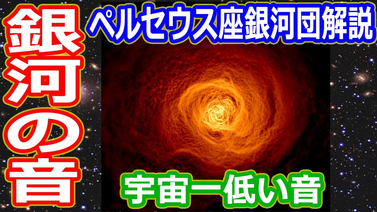 今回は、ペルセウス座銀河団を解説します<br>地球からおよそ2億2000万光年先にあるペルセウス座銀河団は、中心部から超低い音を出しています<br>NASAが人間に聞こえるレベルまで引き上げた音が公開されています<br>なぜ、そんな超低い音が出てるんでしょうか?<br><br>【いちおし宇宙系】<br>・アマゾン総合リンク<br><a href="https://amzn.to/2S8xjpH" target="_blank" rel="noopener nofollow">https://amzn.to/2S8xjpH</a><br>・巨大ブラックホールの謎 宇宙最大の「時空の穴」に迫る<br>書籍版<br><a href="https://amzn.to/3FL3pfE" target="_blank" rel="noopener nofollow">https://amzn.to/3FL3pfE</a><br>Kindle版<br><a href="https://amzn.to/3L7SzkY" target="_blank" rel="noopener nofollow">https://amzn.to/3L7SzkY</a><br>・なぜ宇宙は存在するのか はじめての現代宇宙論<br>書籍版<br><a href="https://amzn.to/386hesP" target="_blank" rel="noopener nofollow">https://amzn.to/386hesP</a><br>Kindle版<br><a href="https://amzn.to/3kP65iH" target="_blank" rel="noopener nofollow">https://amzn.to/3kP65iH</a><br>・ビジュアル 銀河大図鑑<br>書籍版<br><a href="https://amzn.to/3P8uo9o" target="_blank" rel="noopener nofollow">https://amzn.to/3P8uo9o</a><br>Kindle版<br><a href="https://amzn.to/3FmCWVs" target="_blank" rel="noopener nofollow">https://amzn.to/3FmCWVs</a><br><br>公平性や中立性を考えてアフィリエイトリンクは控えていましたが、得た収益を次のレビュー書籍や機材代にするために始めました<br>よろしくお願いします<br><br>へえ~と思ったらチャンネル登録と高評価をお願います<br>ツイッターでは、たまに宇宙ネタをつぶやいています<br><br>◆チャンネル登録はこちら<br><a href="http://www.youtube.com/channel/UChOv-TZWg3X4MDjFUF8CfQg?sub_confirmation=1" target="_blank" rel="noopener nofollow">http://www.youtube.com/channel/UChOv-TZWg3X4MDjFUF8CfQg?sub_confirmation=1</a><br>◆サブチャンネル(スカイ三平の雑多推進研究所)<br><a href="http://www.youtube.com/channel/UCpQEOLtOpmXUwslvgi93yQw?sub_confirmation=1" target="_blank" rel="noopener nofollow">http://www.youtube.com/channel/UCpQEOLtOpmXUwslvgi93yQw?sub_confirmation=1</a><br>◆twitterはこちら<br><a href="https://twitter.com/skysanpei" target="_blank" rel="noopener nofollow">https://twitter.com/skysanpei</a>