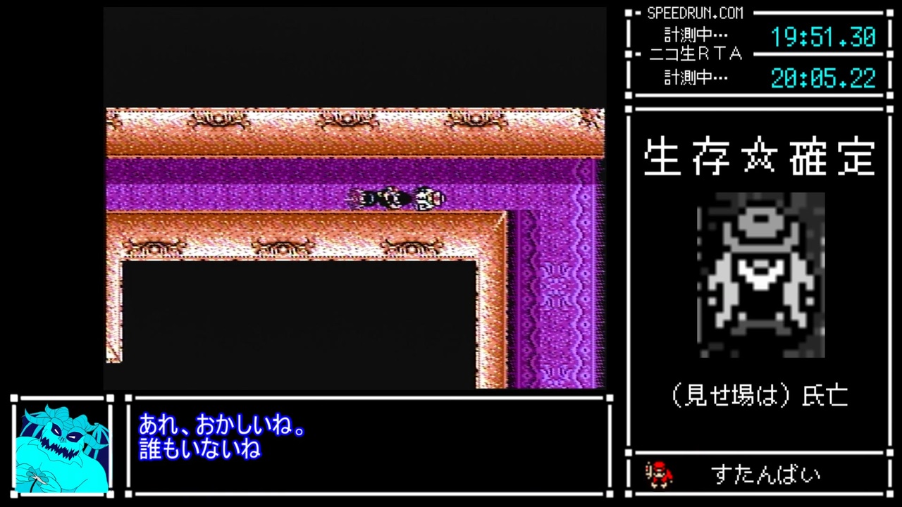 エンディングは4人生存が最長で、ほかより10秒ほど長いみたいです!(豆)<br><br>Part1→<a href="https://www.nicovideo.jp/watch/sm40484035" class="watch">sm40484035</a><br>使用バグ紹介元動画→<a href="https://www.nicovideo.jp/watch/sm24985103" class="watch">sm24985103</a><br>タイマーのみ版:<a href="https://youtu.be/0ZMr36geyco" target="_blank" rel="noopener nofollow">https://youtu.be/0ZMr36geyco</a><br>他のRTA動画:<a href="https://www.nicovideo.jp/mylist/72204350" target="_blank" rel="noopener">mylist/72204350</a><br><br>●計測区間<br>speedrun.com:操作可能~ラスボス撃破後の暗転まで<br>ニコ生RTA(参考):ソフトリセット~エンディング後の暗転まで<br><br>●使用した機種<br>実機(ニューファミコン)<br /><br><u>****宣伝領域****</u><br><span style="color: #9900ff;">◯Twitch:たまにゆっくり音声で配信してます。見てネ!</span><br>→ <a href="https://www.twitch.tv/chari_demon" target="_blank" rel="noopener nofollow">https://www.twitch.tv/chari_demon</a><br><span style="color: #0000ff;">◯Twitter:たまに役に立たないことをつぶやく場所。見なくてイイです!</span><br>→ <a href="https://twitter.com/MatChariot" target="_blank" rel="noopener nofollow">https://twitter.com/MatChariot</a>
