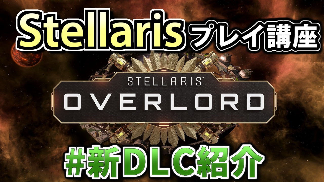 <span style="color: #cc0000; font-size: 16px;"><strong>【ただ!】5/23まで今週末限定Stellaris無料プレイ!今すぐダウンロードして週末はStellarisを遊ぼう!</strong></span><span style="font-size: 16px;"><strong> </strong></span><br><strong> ダウンロードはこちら: </strong><span style="color: #0000ff;"><strong><u><a href="https://play.stellaris.com/Yuranko" target="_blank" rel="noopener nofollow">https://play.stellaris.com/Yuranko</a></u></strong></span><br><span style="font-size: 10px;"> ※ この動画はParadox Interactiveの提供でお送りします。 This video is sponsored by Paradox Interactive.</span><br><br>宇宙が舞台の戦略SLG、Stellaris (ステラリス) の遊び方・攻略を初心者向けに解説するプレイ動画。<br>特別編は新DLC「オーバーロード」とVer3.3、Ver3.4のアップデート変更点について。<br><br>前 : 第17話 (<a href="https://www.nicovideo.jp/watch/sm40465045" class="watch">sm40465045</a>) <-> 次 : (次回作をお楽しみに!)<br>このシリーズのリンク: <a href="https://www.nicovideo.jp/series/263583" target="_blank" rel="noopener">series/263583</a><br><br>■ プレイ環境 : Stellaris Ver 3.4.2<br>■ 使用MOD:<br> ・Stellaris 固有名詞日本語化MOD : <a href="https://steamcommunity.com/sharedfiles/filedetails/?id=2807826357" target="_blank" rel="noopener nofollow">https://steamcommunity.com/sharedfiles/filedetails/?id=2807826357</a> (固有名詞も日本語になる)<br> ・Cinematic Camera : <a href="https://steamcommunity.com/sharedfiles/filedetails/?id=703156866" target="_blank" rel="noopener nofollow">https://steamcommunity.com/sharedfiles/filedetails/?id=703156866</a> (動画映えする撮影ができる)<br> ・Amazing Space Battles + Shorter Battles : <a href="https://steamcommunity.com/sharedfiles/filedetails/?id=1878473679" target="_blank" rel="noopener nofollow">https://steamcommunity.com/sharedfiles/filedetails/?id=1878473679</a> (戦闘がキレイに)<br><br>この動画は VOICEVOX:ずんだもん VOICEVOX:四国めたん VOICEVOX:春日部つむぎ の音声を使用しています。<br />HoI4プレイ講座 → (<a href="https://www.nicovideo.jp/mylist/62136132" target="_blank" rel="noopener">mylist/62136132</a>)<br>EU4プレイ講座→(<a href="https://www.nicovideo.jp/mylist/61049948" target="_blank" rel="noopener">mylist/61049948</a>)<br>CK3プレイ講座→(<a href="https://www.nicovideo.jp/series/191974" target="_blank" rel="noopener">series/191974</a>)<br>Stellarisプレイ講座→(<a href="https://www.nicovideo.jp/series/263583" target="_blank" rel="noopener">series/263583</a>)<br>Vic3プレイ講座→(<a href="https://www.nicovideo.jp/series/364690" target="_blank" rel="noopener">series/364690</a>)<br>赤いシムシティ実況動画 → (<a href="https://www.nicovideo.jp/series/8074" target="_blank" rel="noopener">series/8074</a>)<br>太閤立志伝5 DX実況動画→ (<a href="https://www.nicovideo.jp/series/323444" target="_blank" rel="noopener">series/323444</a>)<br>信長の野望 小田家プレイ動画 → (<a href="https://www.nicovideo.jp/series/353641" target="_blank" rel="noopener">series/353641</a>)<br>紲星あかりF1参戦記→(<a href="https://www.nicovideo.jp/series/222744" target="_blank" rel="noopener">series/222744</a>)<br>あかねとあかりのソビエト国境警備隊!→ (<a href="https://www.nicovideo.jp/series/394983" target="_blank" rel="noopener">series/394983</a>)<br>Cities: Skylines2都市開発プレイ動画 → (<a href="https://www.nicovideo.jp/series/436779" target="_blank" rel="noopener">series/436779</a>)<br>Manor Lords村作りプレイ動画 → (<a href="https://www.nicovideo.jp/series/468306" target="_blank" rel="noopener">series/468306</a>)<br>全動画投稿リスト (<a href="https://www.nicovideo.jp/user/77964272" target="_blank" rel="noopener">user/77964272</a>)