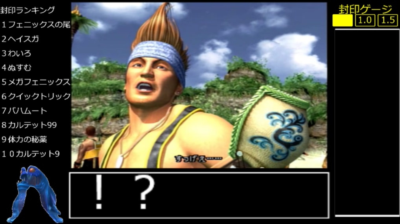 プチワッカMAD回<br><br>縛り内容<br>・レベルが1.5上がる度にランダムでアイテム・召喚獣・トリガーコマンド・オーバードライブ技・アビリティ(白黒魔法使う調合等の大枠以外)が1つ封印される。<br> (武器が全封印されたキャラは物理攻撃禁止)<br>・初めて探索する区間(セーブスフィア間)は逃走禁止。ボスは試行回数殴りOK。<br>・全滅時、経験値(AP)を再現。<br>・戦闘終了時、全員がAPを取得する(APありの戦闘のみ)。無理な場合、1人死亡につき3封印。<br><br>(封印対象物について)<br>武防具アビリティ「APなし」・「エンカウントなし」・アビリティ「とんずら」「わいろ(稼ぎ以外での使用)」は禁止。<br>武防具は改造前の名称を封印対象とする。改造後の名称の使用可否は、改造前に準ずる。<br> ex)アーロンの武器の場合、スロット数の異なるベース武器×3&捕獲武器&七曜の武器の5種類となる。<br> スフィアは基本パラメータUP4種とキースフィアのみ、封印されてもスフィア盤での使用は可。<br><br>リスペクト元(封印王) → <a href="https://www.nicovideo.jp/watch/sm4569128" class="watch">sm4569128</a><br><br>過去シリーズ → <a href="https://www.nicovideo.jp/mylist/71307387" target="_blank" rel="noopener">mylist/71307387</a><br>告知 → <a href="https://twitter.com/mazoriahosh" target="_blank" rel="noopener nofollow">https://twitter.com/mazoriahosh</a><br>youtube → <a href="https://www.youtube.com/watch?v=qskHDlLNypY" target="_blank" rel="noopener nofollow">https://www.youtube.com/watch?v=qskHDlLNypY</a><br><br>次回投稿予定日 5/28