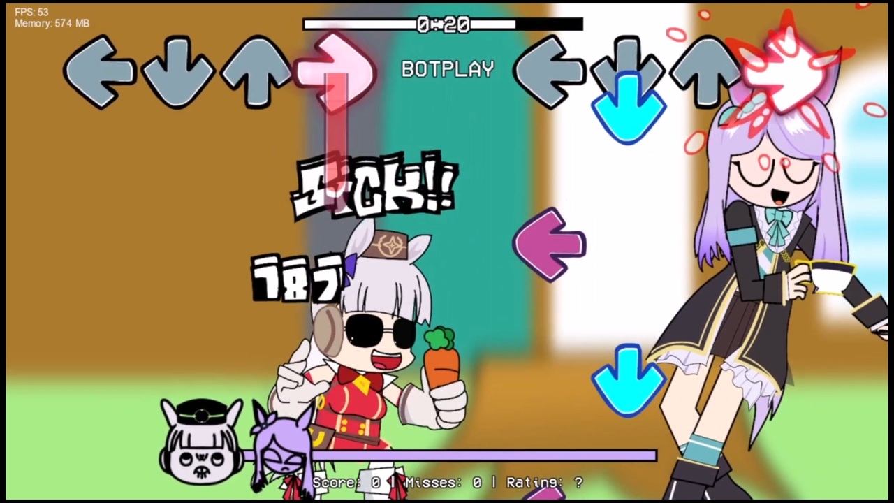 いつの間にか両方作ってたので初投稿です。<br>なんか増えました。気にするな!<br><br>一応week Gのほうを作り終えたら制作をひと段落させる予定です。<br><br>音量がガバガバかもしれない…<br>声はそれぞれをUTAUで合成。誰かさんはあの人の女体化から取ってます。<br>超突貫で作ったのでミスがあっても許して…。<br>FNF本家:<a href="https://www.newgrounds.com/portal/view/770371" target="_blank" rel="noopener nofollow">https://www.newgrounds.com/portal/view/770371</a><br>このキャラのMODの説明1:<a href="https://friday-night-funkinmod.fandom.com/ja/wiki/Mid-Fight_Masses" target="_blank" rel="noopener nofollow">https://friday-night-funkinmod.fandom.com/ja/wiki/Mid-Fight_Masses</a><br>このキャラのMODの説明2:<a href="https://friday-night-funkinmod.fandom.com/ja/wiki/ENA" target="_blank" rel="noopener nofollow">https://friday-night-funkinmod.fandom.com/ja/wiki/ENA</a><br>曲名はそれぞれ「Ugh」「Guns」「Stress」<br>下書きをお借りした<br>えふけい様「<a href="https://twitter.com/Necosama830」" target="_blank" rel="noopener nofollow">https://twitter.com/Necosama830」</a><br>そしてたぬき原作のデオン様「<a href="https://twitter.com/deon_Jetaime」と" target="_blank" rel="noopener nofollow">https://twitter.com/deon_Jetaime」と</a><br>たぬきを作った名もなき「」にも感謝を。<br><br>6/23追記:質問が気になったので返信します。<br>ゲージの押し合いはおそらくキャラにその動作が搭載されているか、scriptフォルダ内にそれ用のプログラムが入っています。どちらかにluaファイルがあるのでその中身を見るとhealthに関わるスクリプトが組まれているので、それを読み解けばあるいは…。もしくはそれ用のMODがあるみたいなので検索を。<br> <br><br>前作のようなもの→<a href="https://www.nicovideo.jp/watch/sm40208175" class="watch">sm40208175</a><br><a href="https://www.nicovideo.jp/watch/sm39937778" class="watch">sm39937778</a>←<span style="color: #ff00ff;"><strong><u>FNF</u></strong></span><strong><u>って何?という方はこちらへ。</u></strong><br>何かあれば<span style="color: #d3d3d3;">何もなくてもたくさん</span>コメントください<br><br />作者→<a href="https://twitter.com/Fortress928" target="_blank" rel="noopener nofollow">https://twitter.com/Fortress928</a> 進捗はできるだけ固定ツイートしてみるようにします 多分。